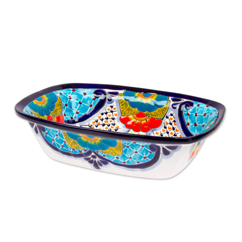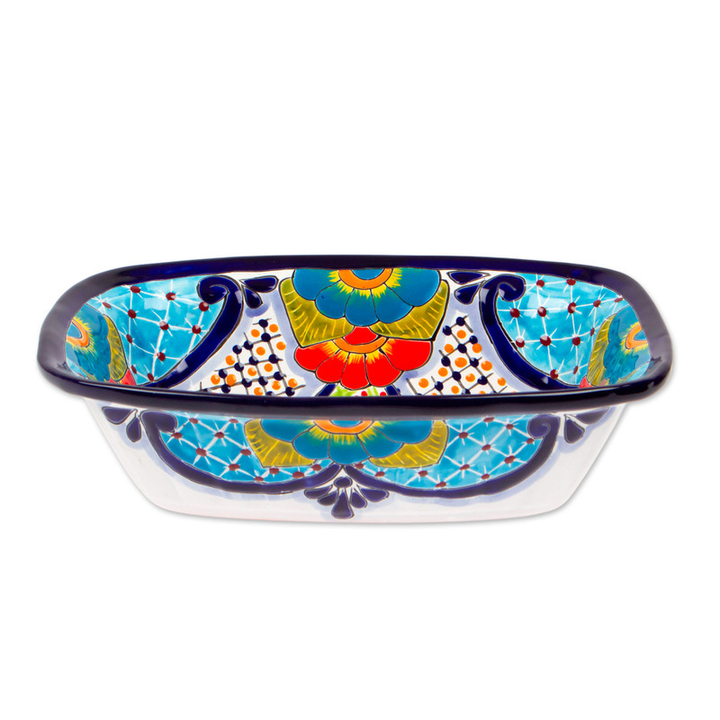 Perfect for a dinner party with friends, this serving bowl from Mexico is truly beautiful. Sergio Ponce creates it in colorful Majolica ceramic, featuring colorful hand-painted floral motifs inspired by traditional Talavera work.