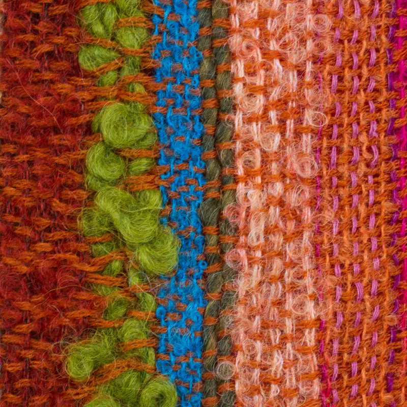 This scarf has now become one of my very favorites to the point I am purchasing new shirts so I have more to wear it with more often! It is so soft, so colorful with blended shades that it is beautiful yet not overwhelming to the eye. It is very unique and I am grateful that I found it on this site, purchased it and can wear it for many years to come. It is very excellent in its crafting by hand! Thank you, Novica, for providing the opportunity for me to support the artists worldwide!
