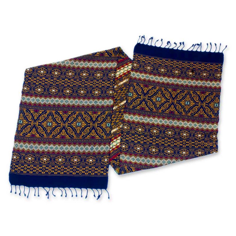 "To us, blue represents the welcoming warmth of home," says a representative of Yama Aj Chixot Artisan Group in reference to the deep blue hues of this table runner. She explains that many of them feel an extraordinary sense of companionship when blue is present in their designs. "We tend to use blue a lot." They work in teams on the pedal loom, weaving the table runner with cotton featuring the legendary wreath that appears in the huipiles worn by women in Guatemala.