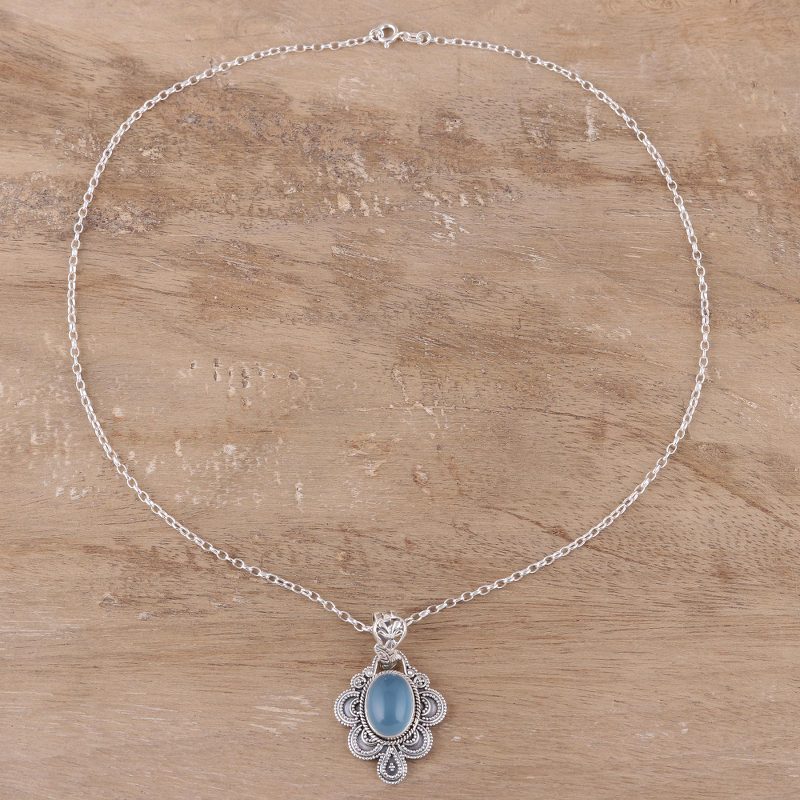 You can find our chalcedony pendant necklace 'Blue Antique Radiance' by Neeru Goel in jewelry categories such as Gemstone Necklaces, Chalcedony Necklaces, Silver Necklaces, Sterling Silver Necklaces and Pendant Necklaces. Enjoy exploring these sections for other Novica treasures.