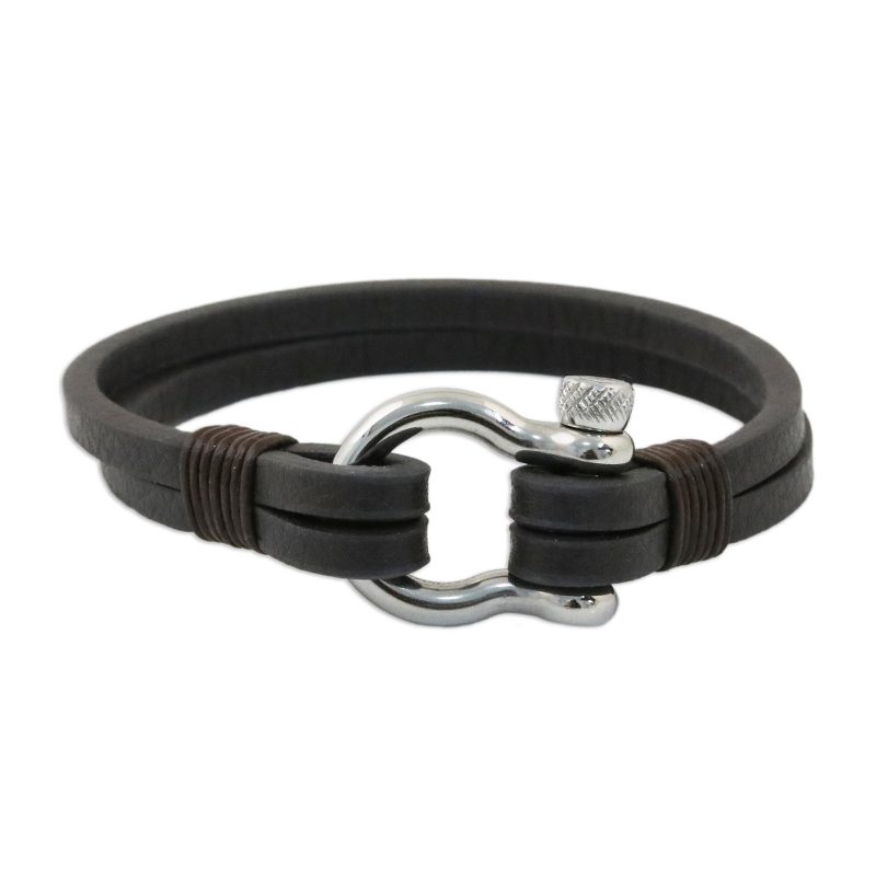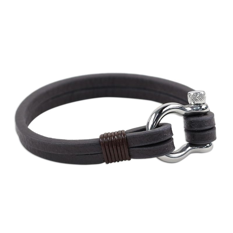 Two cords of leather in a solid brown color run side-by-side, circling the wrist in this bracelet from Thailand. Passaramon crafts the simple bracelet, finishing it with a horseshoe-shaped stainless steel clasp.