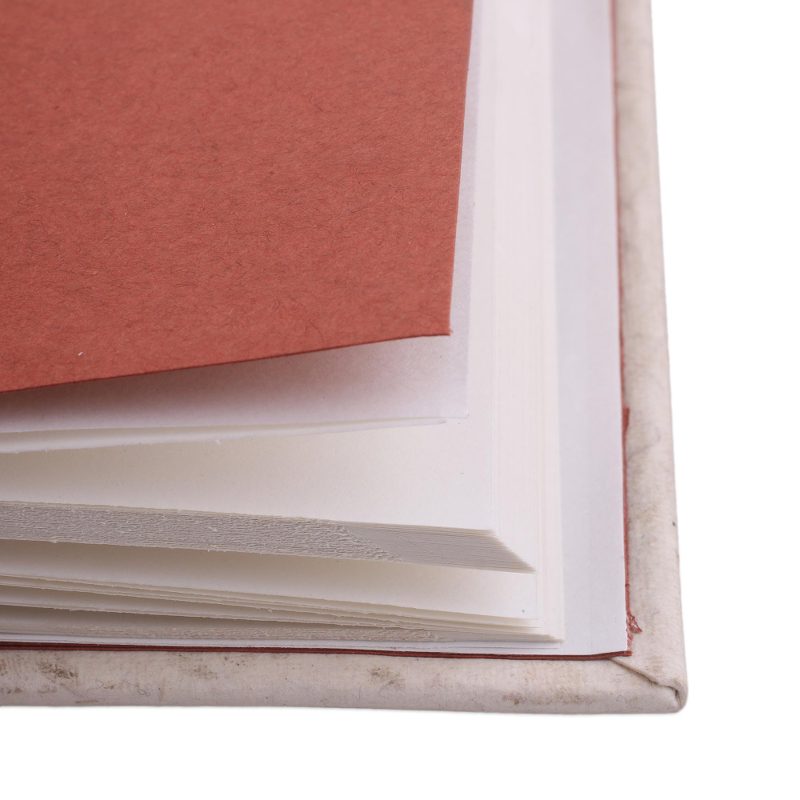 A floating leaf is printed onto the hardcover of this charming journal from India. Local artisans craft the journal of paper, detailed with beautiful paisley designs on spine and back cover. It opens to 60 pages of handmade paper for keeping your memories.