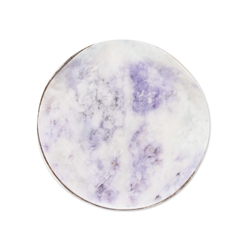 Lilac jade is a natural stone. Its color will vary due to its white, green, blue and rose veins.