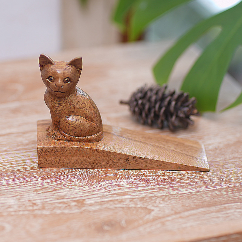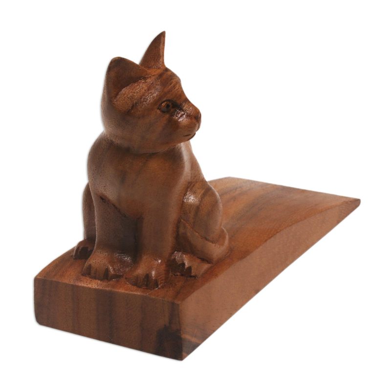 This little cat doorstop is purrfect for keeping my door in the right position. It is very well made. The carving is nicely done and the wood is a beautiful tone that matches the color of my door.