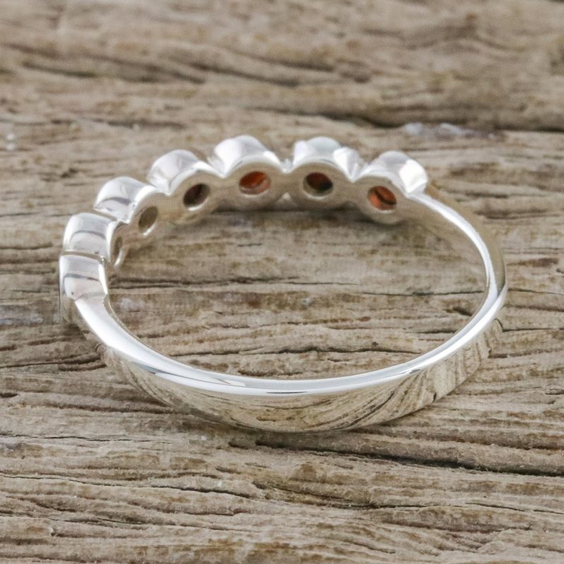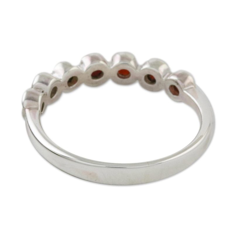 Seven faceted garnets align like memories to crown a lovely ring by Narinee. Working in sterling silver, the Thai artisan reinterprets a classic design. The style is popular as an anniversary gift but is beautiful anytime.