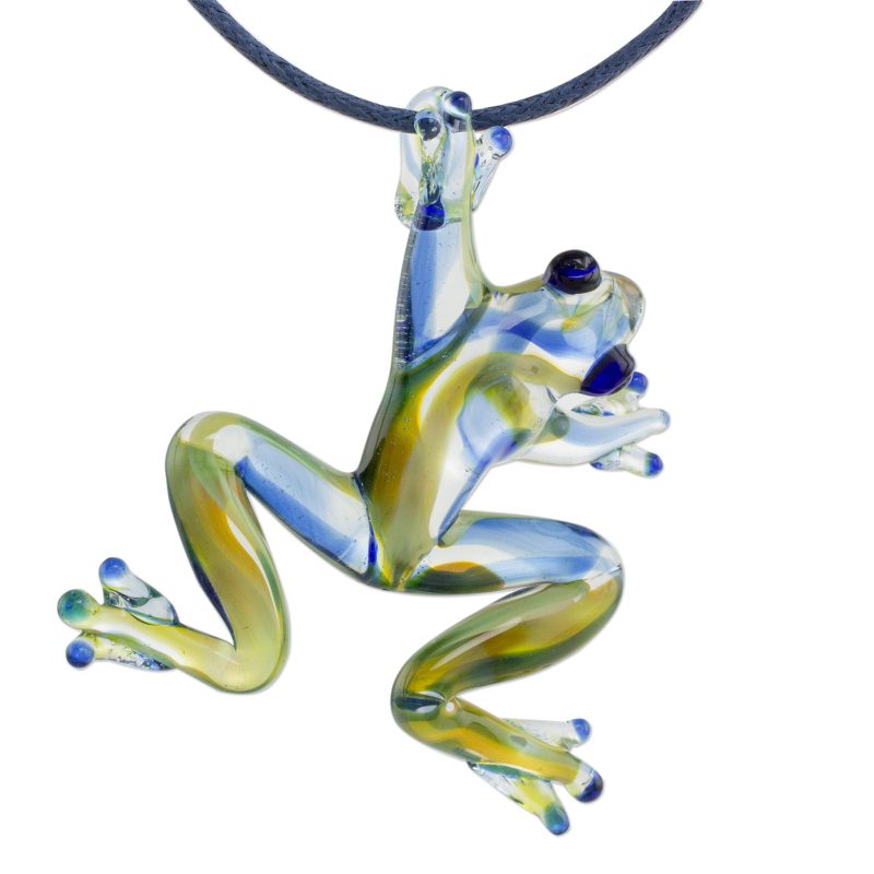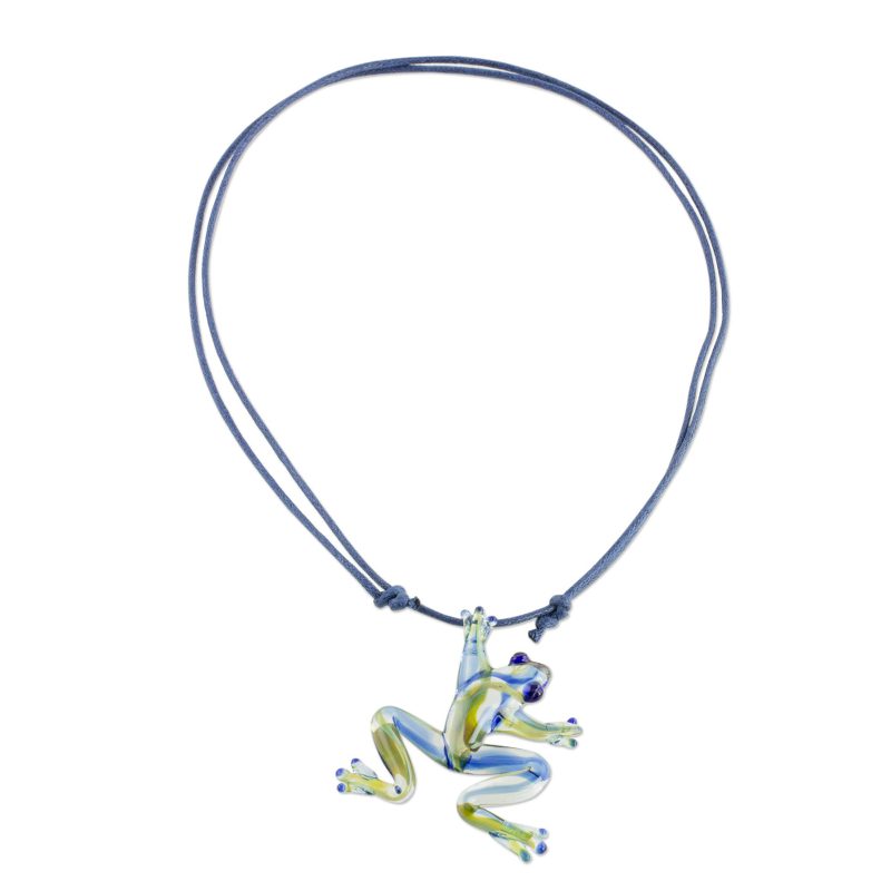 You can find our art glass pendant necklace 'Pond Frog' by Guisselle Mora in jewelry categories such as Animal Themed Necklaces, No Stone Necklaces, Cotton Necklaces and Pendant Necklaces. Enjoy exploring these sections for other Novica treasures.