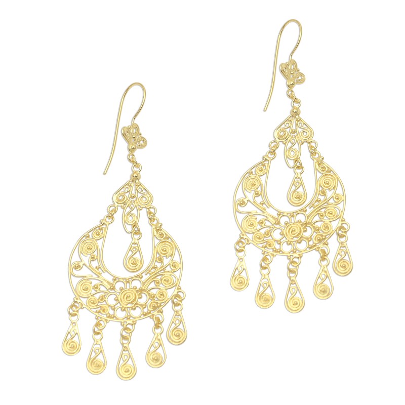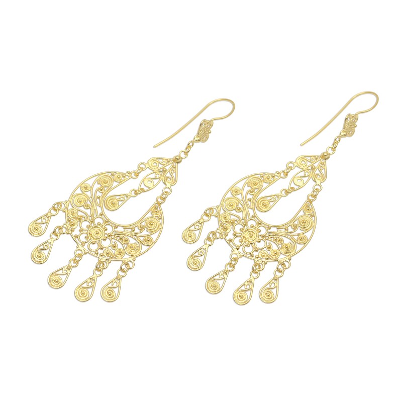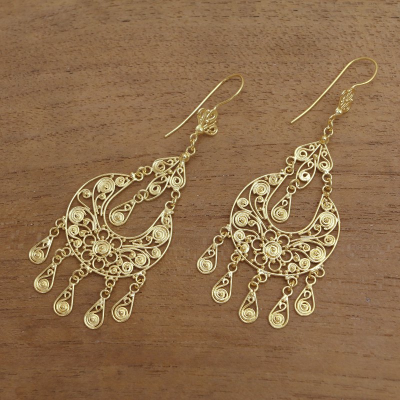 You can find our gold plated sterling silver chandelier earrings 'Simply Glamorous' by Desi Antari in jewelry categories such as No Stone Earrings, Sterling Silver Earrings and Statement Earrings. Enjoy exploring these sections for other Novica treasures.