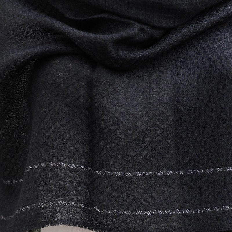 Sensual and mysterious, this Peruvian shawl features a solid color in black with dotted patterns in smoke at the top and bottom. Raquel and Gregor carry on Inca weaving traditions, diligently hand-weaving the shawl of alpaca blend fibers on an artisanal loom. The soft, feminine accessory is completed with fringes at each end.