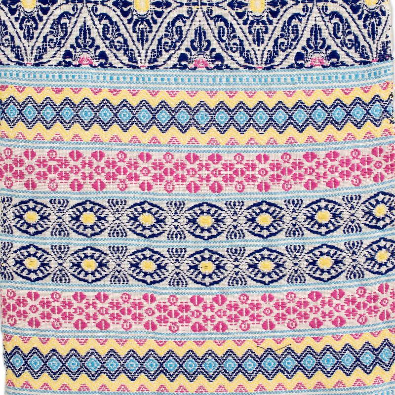 "To us, blue represents the welcoming warmth of home," says a representative of Yama Aj Chixot Artisan Group in reference to the various blue hues of this table runner. She explains that many of them feel an extraordinary sense of companionship when blue is present in their designs. "We tend to use blue a lot." They work in teams on the pedal loom, hand-weaving the table runner with cotton featuring the legendary wreath that appears in the huipil blouses worn by women in Guatemala.
