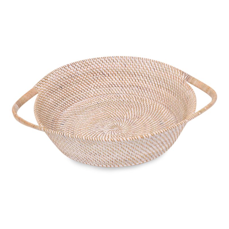 Born in Java, Ma'ruf now resides in Bali where he promotes the traditional handicrafts of Lombok Island, This circular basket features generous handles on either side. It is patiently woven by hand to showcase the textures of bamboo and ate grass.