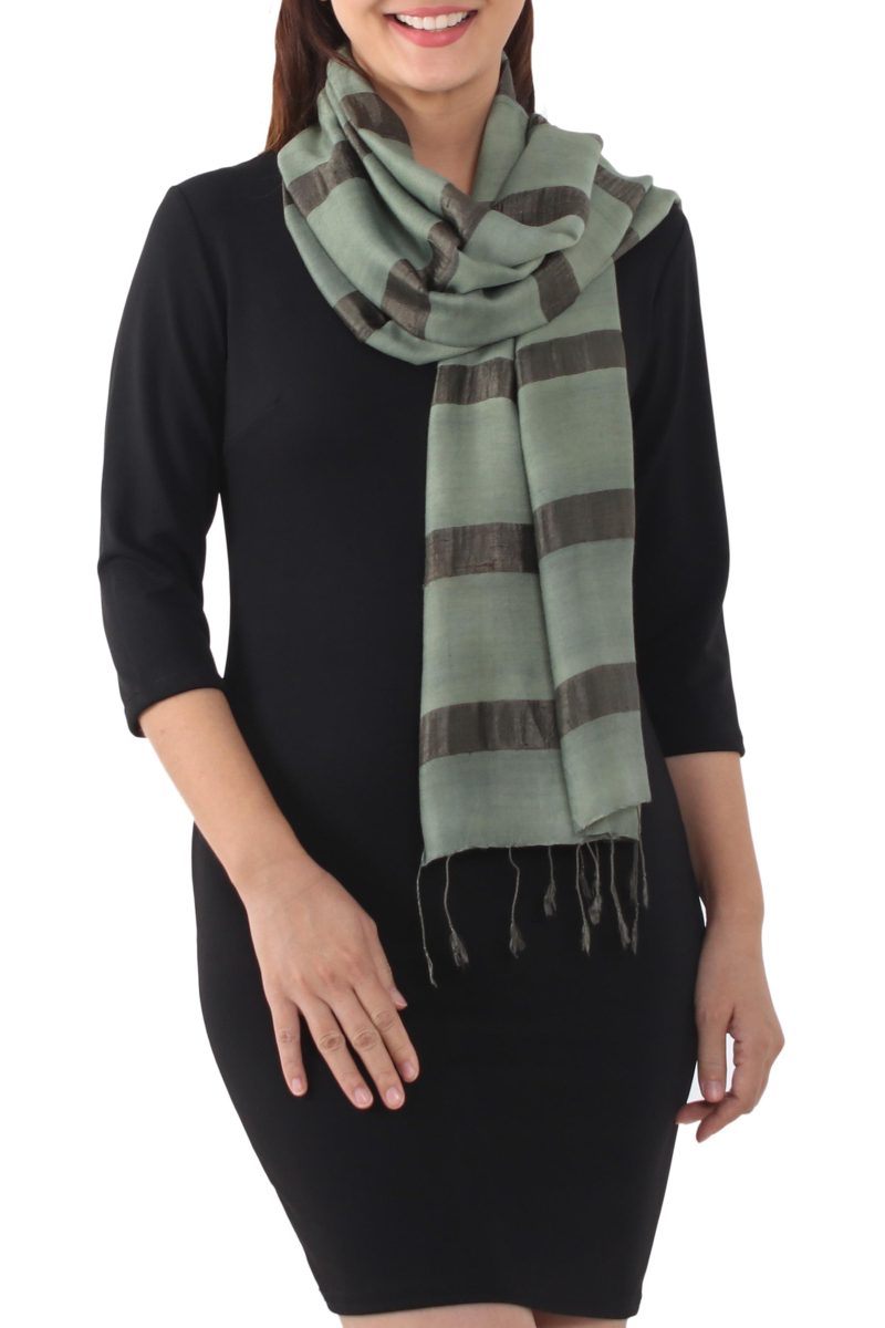 You can find our silk blend scarf 'Sound of Nature in Olive' by Vinita in accessories categories such as Hand Woven Scarves, Silk Scarves, Rayon Scarves and Wrap Scarves. Enjoy exploring these sections for other Novica treasures.