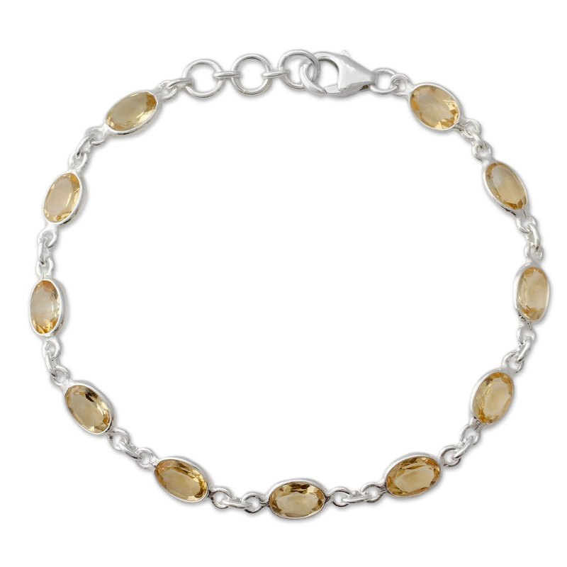 Sparkling citrines radiate an aura of romance. From Bhavesh in India, this design links gems totaling 10 carats in a sterling silver bracelet.