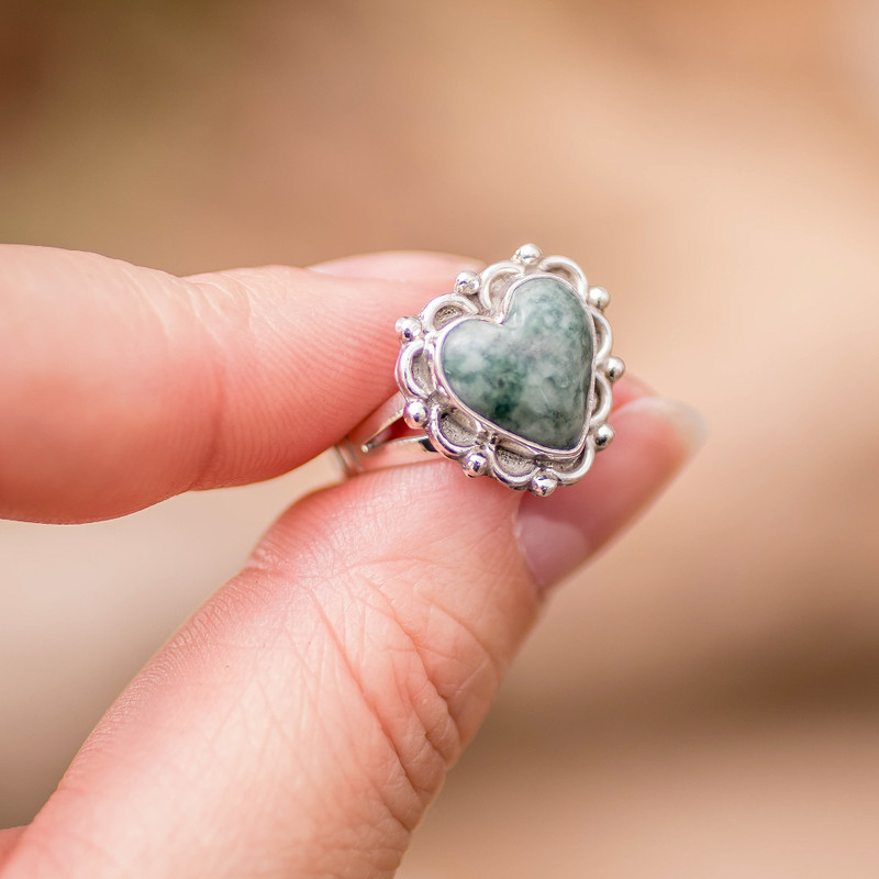You can find our jade heart ring 'Zinnia Love' by Zandra Lorena Sajbin in jewelry categories such as Heart Rings, Jade Rings, Silver Rings, Sterling Silver Rings and Cocktail Rings. Enjoy exploring these sections for other Novica treasures.