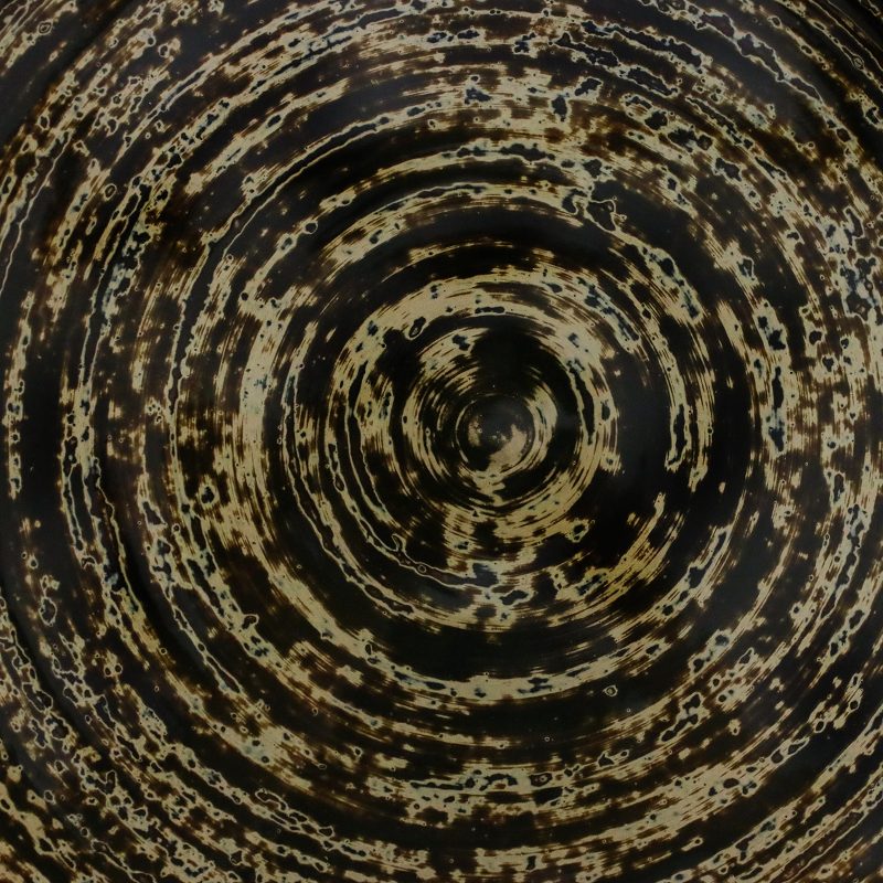 The work is partially polished with sandpaper according to a predetermined pattern - generally concentric - and a few coats of different lacquer colors are applied to the surface and the object is left to dry for a few days. The process remains identical for each ensuing color, alternating lacquering and polishing sessions until the design is achieved. The final coat is washed with water and polished with powdered fired clay, offering an irresistible sheen.