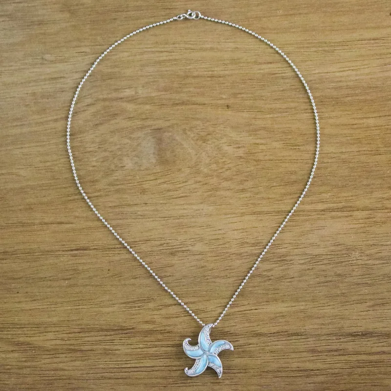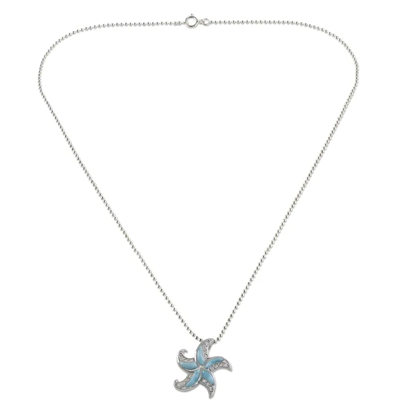 You can find our larimar pendant necklace 'Starfish Sparkle' by Michael Krainer in jewelry categories such as Animal Themed Necklaces, Birthstone Necklaces, Larimar Necklaces, Cubic Zirconia Necklaces and Silver Necklaces. Enjoy exploring these sections for other Novica treasures.