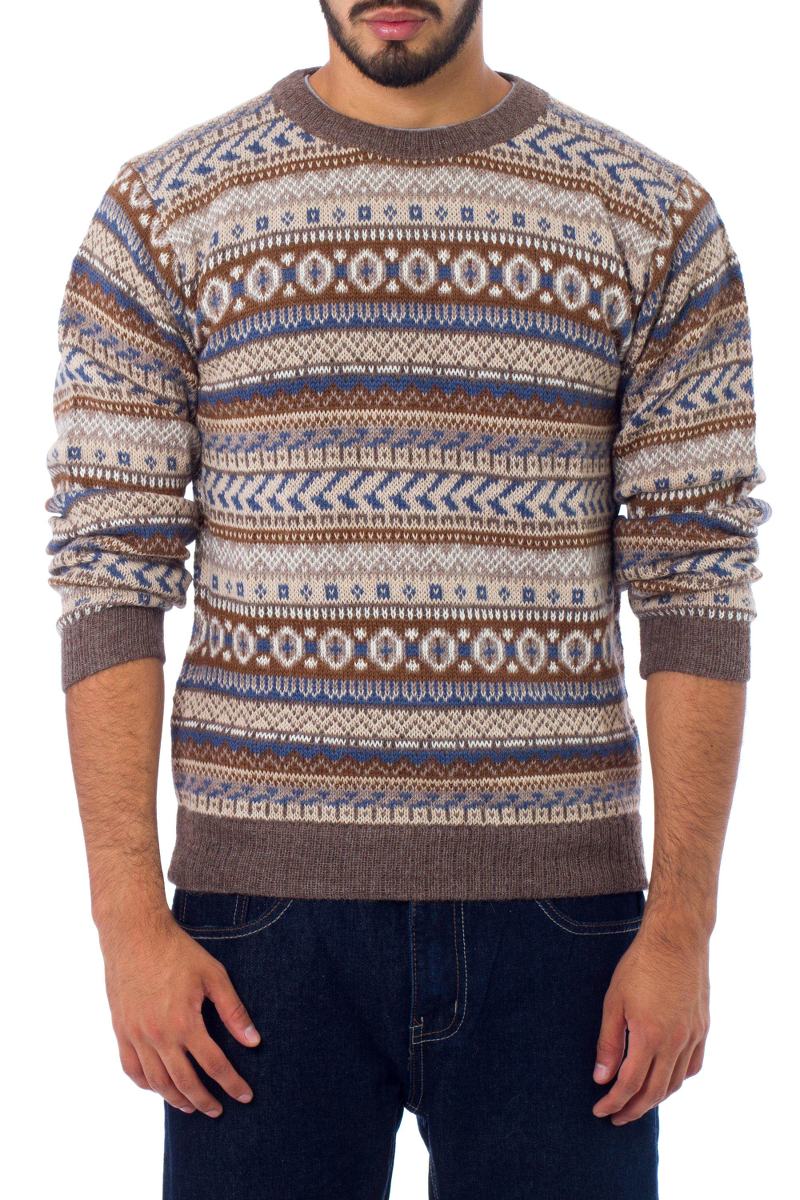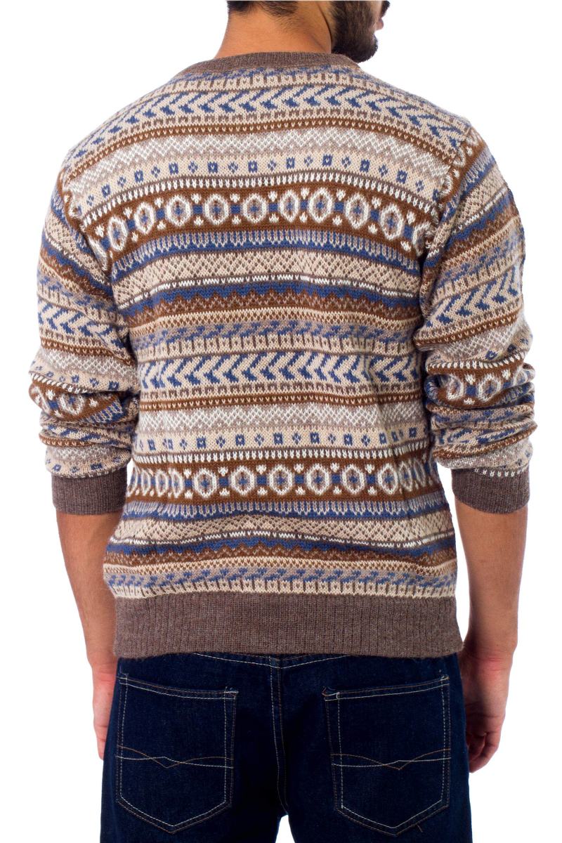Fernando Cano conjures a hypnotic composition for the design of this men's sweater. Contrasting warm browns and cool blues, the sweater is knit of soft alpaca wool.