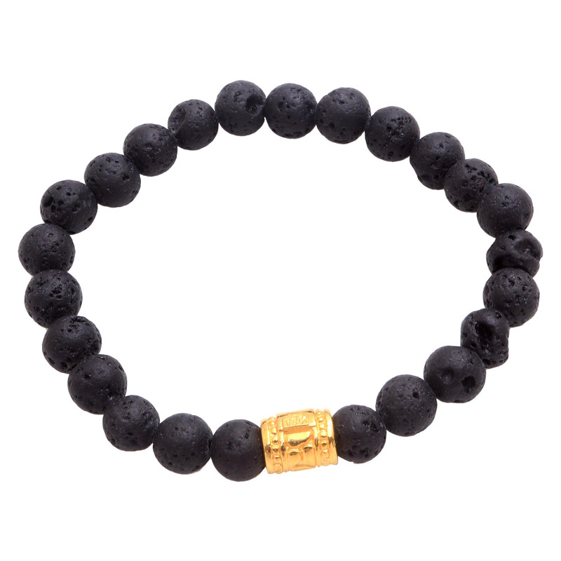 Located on the island of Bali, Indonesia, Mount Batur is an active volcano located at the center of two concentric calderas. Asmara Putra pays homage to this majesty of nature, creating this men's stretch bracelet. Natural lava stone beads circle the wrist, centered by a gleaming bead of 18k gold plated sterling silver.