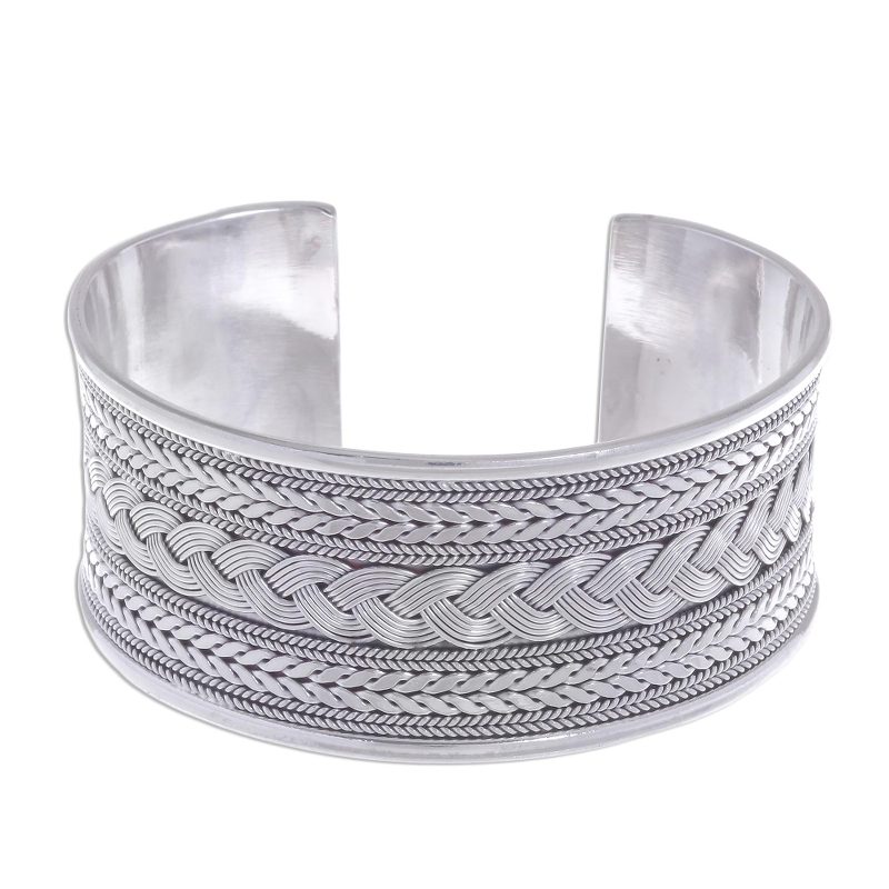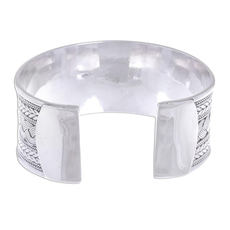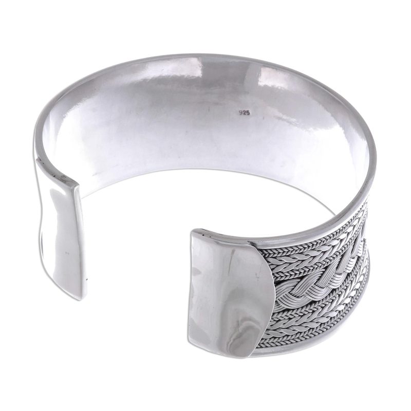 Backed by our 100% Happiness GuaranteeThis substantial cuff bracelet is crafted by Karen hill tribe artisans and presented by Pakaon Sojintarit. The sterling silver cuff is adorned with myriad waves and braids that evoke ocean currents. The ends and edges are capped with brightly polished silver.