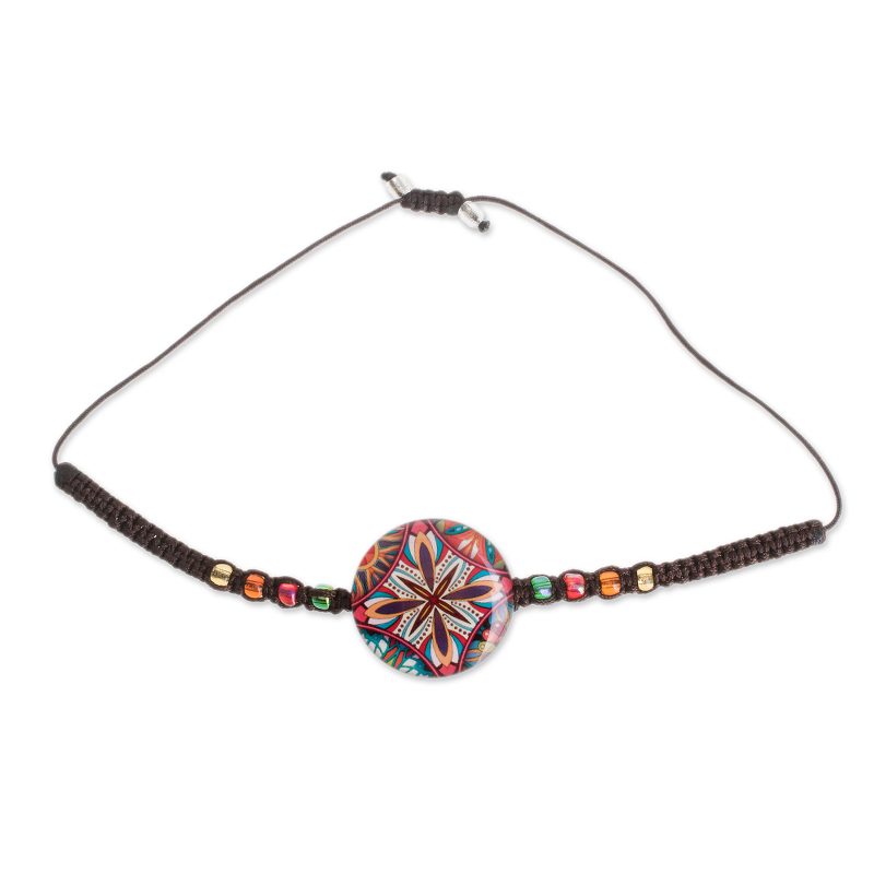 Delivery EstimatePrinted onto paper and coated in resin, colorful motifs form a vibrant, eye-catching kaleidoscope in the pendant of this bracelet from Costa Rica. Katherine Vargas designs the bracelet, which circles the wrist with a handcrafted macrame band. Colorful glass beads accentuate the pendant and the adjustable sliding knot.
