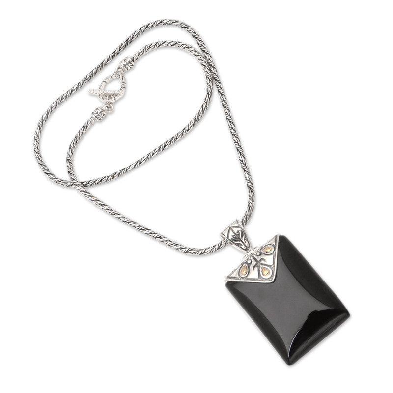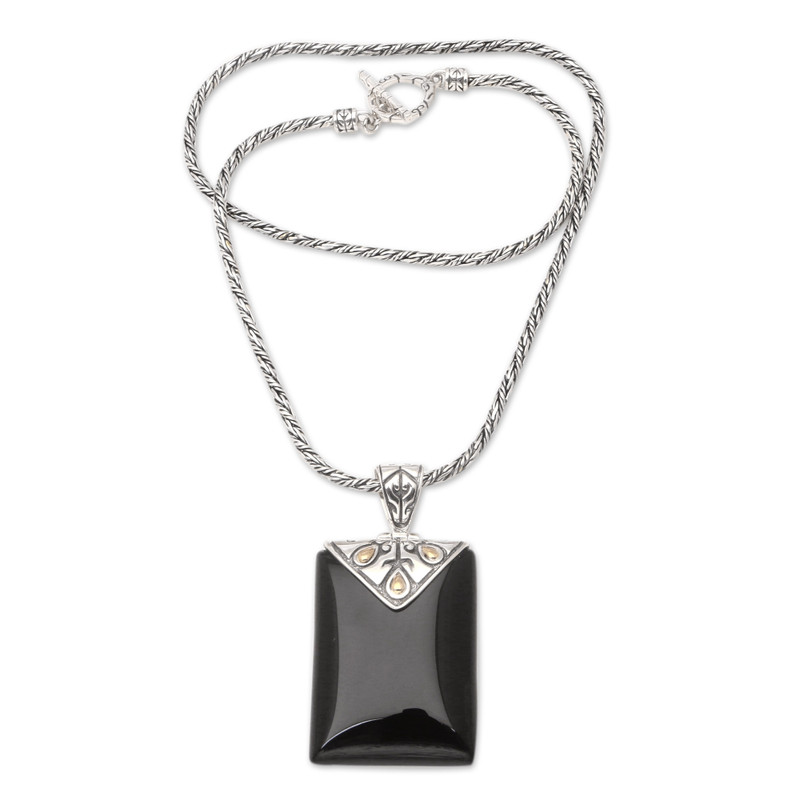 You can find our gold accent onyx pendant necklace 'Magnanimous' by Putu Gede Darmawan in jewelry categories such as Birthstone Necklaces, Onyx Necklaces, Sterling Silver Necklaces and Pendant Necklaces. Enjoy exploring these sections for other Novica treasures.