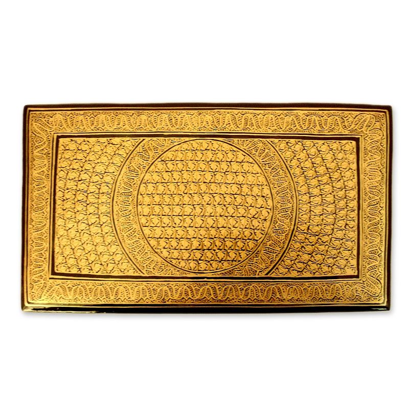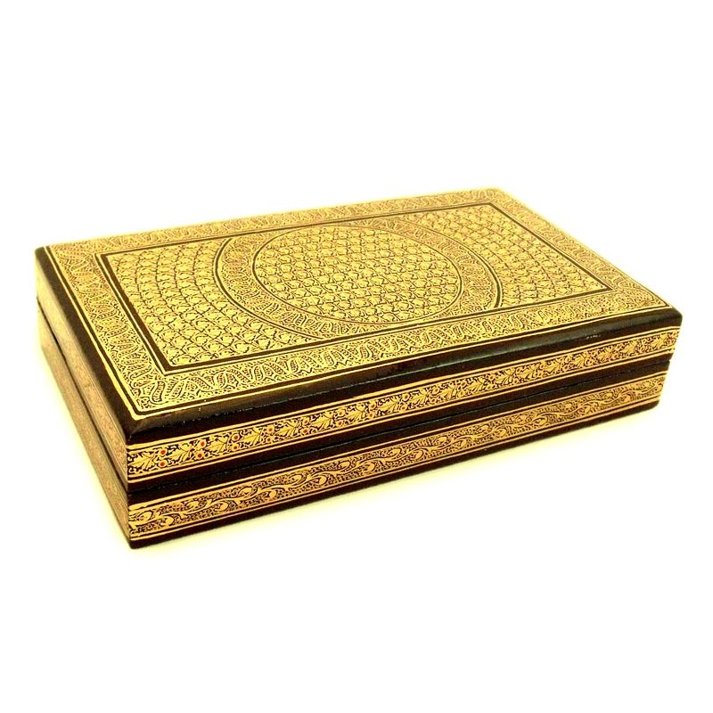 Flowers blossom in golden splendor, each one carefully painted by hand on a jewelry box. By Riyas, the box is crafted by hand from wood and covered with papier mache.