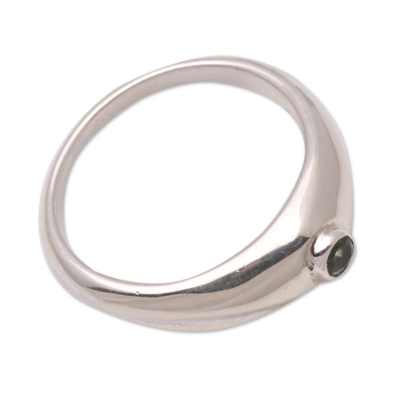 Sleek yet dynamic, a fluid circle of silver is punctuated by a faceted peridot. This beautiful, modern ring comes from Bali's Nyoman Rena.