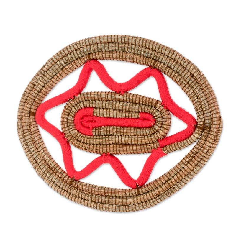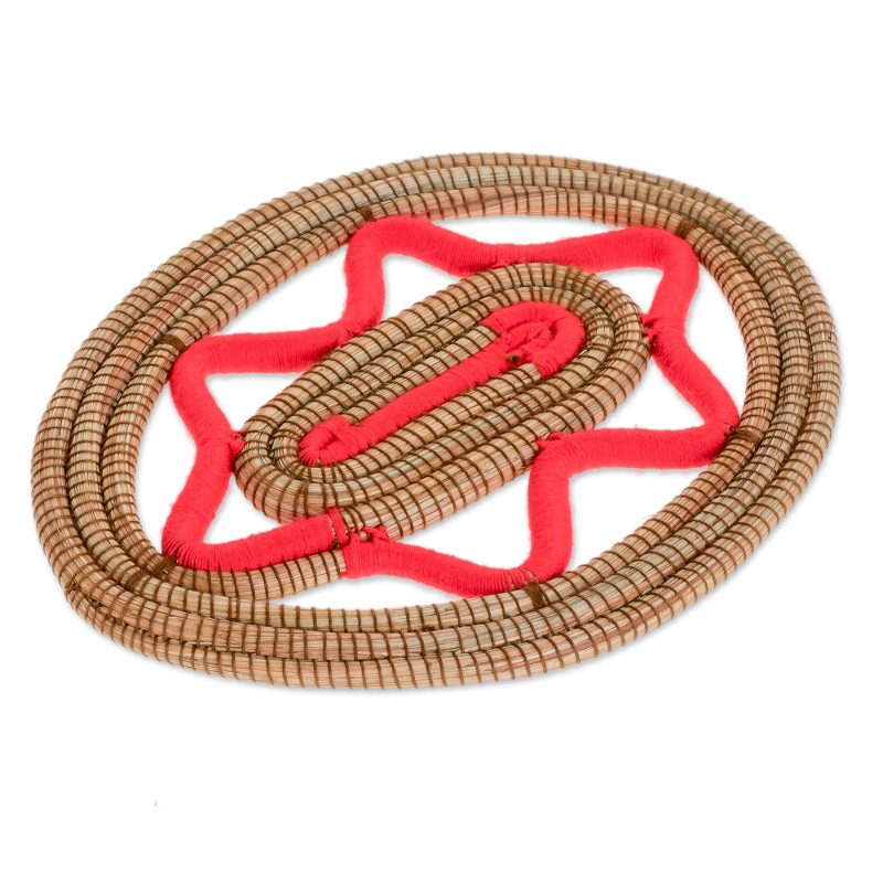 Delivery EstimateHandcrafted of natural pine needles, this pair of oval placemats is designed by Nicaragua's Tamara Pereira. She weaves each coiled placemat by hand, accenting them with acrylic thread in poppy. Says Pereira, "The art of Nicaraguan basketry is a tradition that is passed down from generation to generation. I love being able to create useful pieces for the home."