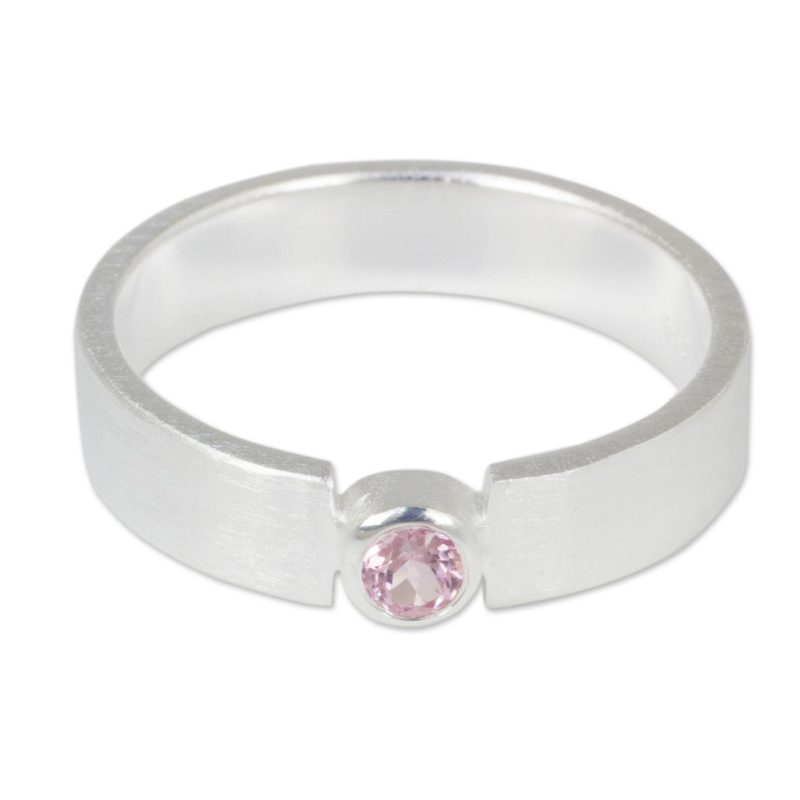 Thailand's Jantana designs a ring of scintillating beauty. She crafts the ring by hand with sterling silver featuring a brushed finish. A solitary natural pink tourmaline glows with feminine elegance.