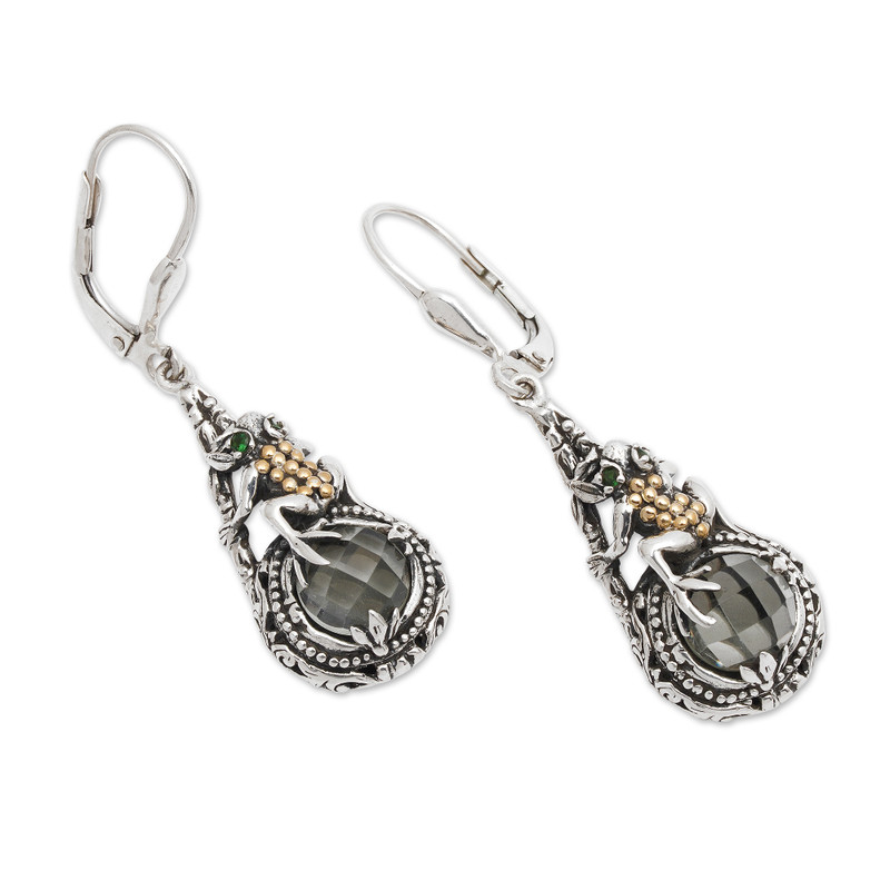 You can find our prasiolite and tsavorite dangle earrings 'Tropical Frog' by Kadek Hendra in jewelry categories such as Birthstone Earrings, Prasiolite Earrings, Sterling Silver Earrings and Dangle Earrings. Enjoy exploring these sections for other Novica treasures.