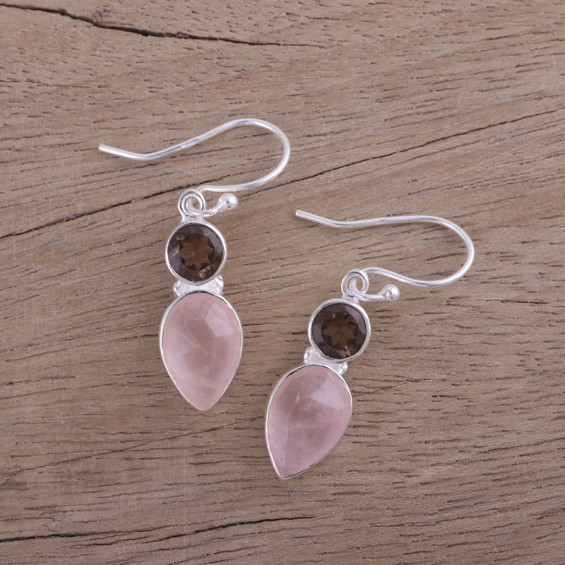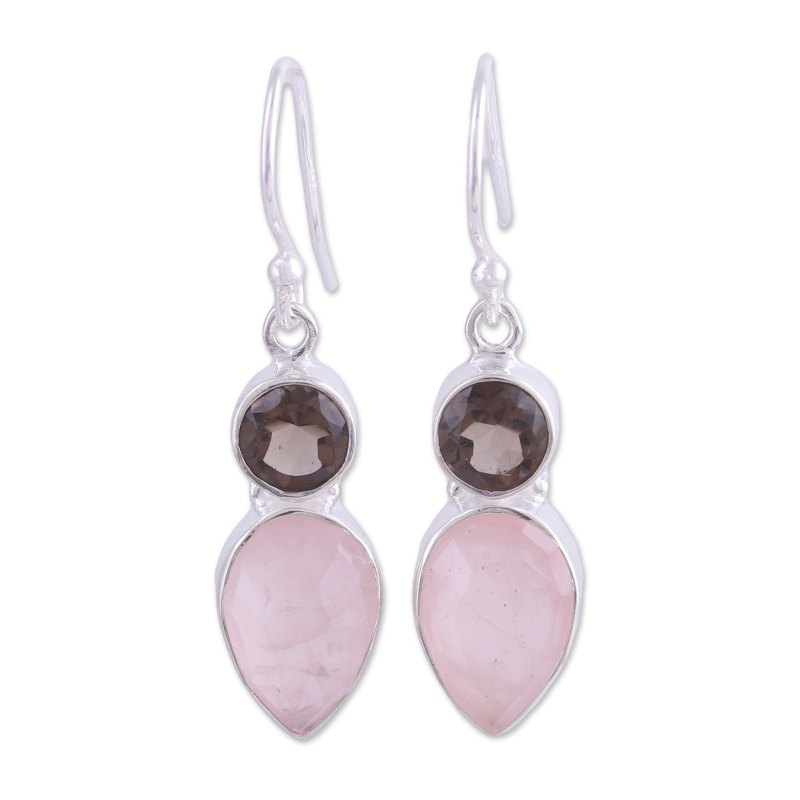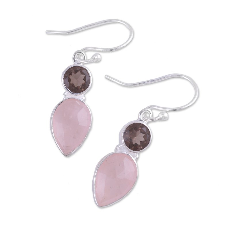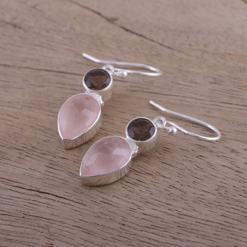 You can find our rose quartz and smoky quartz dangle earrings 'Dazzling Alliance' by Neetu Barathi in jewelry categories such as Birthstone Earrings, Rose Quartz Earrings, Smoky Quartz Earrings, Silver Earrings and Sterling Silver Earrings. Enjoy exploring these sections for other Novica treasures.