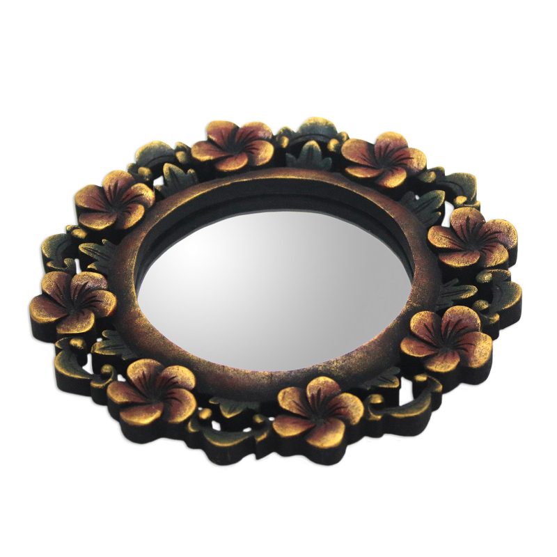 You can find our wood wall mirror 'Plumeria Garland' by Sarwaedi in wall decor categories such as Floral Mirrors, East meets West Mirrors, Balinese Traditional Carvings Mirrors, Wood Mirrors and Glass Mirrors. Enjoy exploring these sections for other Novica treasures.