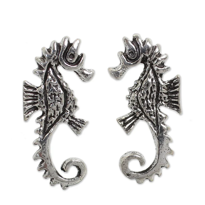 Crafted of silver, seahorses pose on sterling posts. Thailand's Wadarat Supasirisuk presents delightful handcrafted earrings.