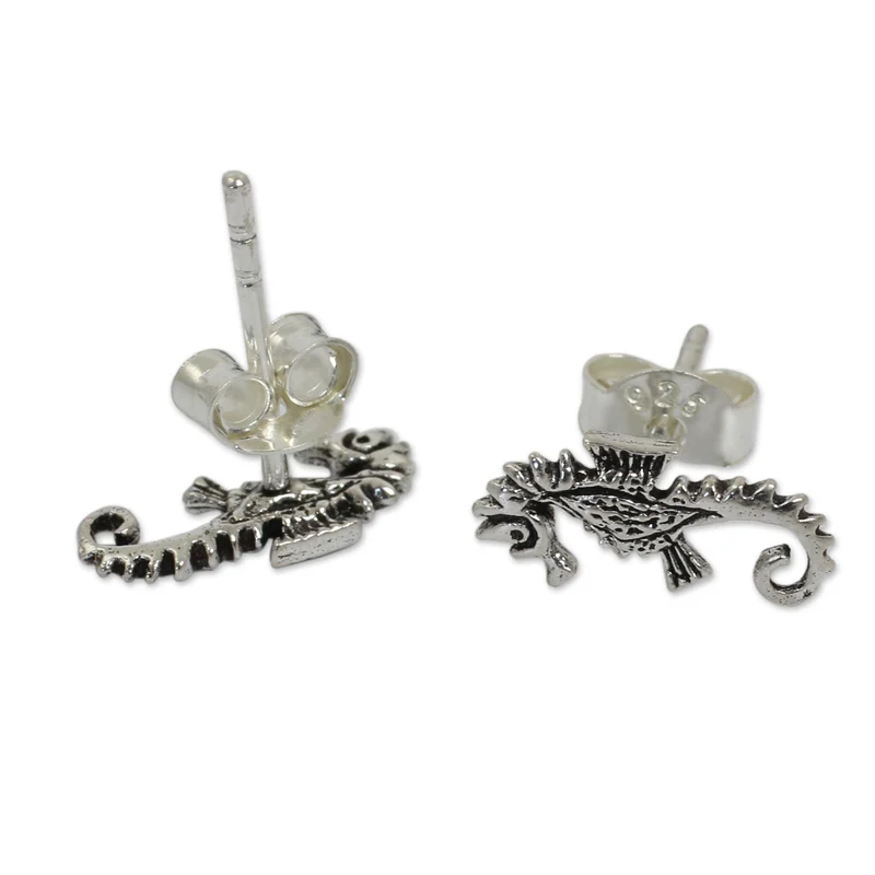 You can find our sterling silver button earrings 'Seahorse' by Wadarat Supasirisuk in jewelry categories such as Animal Themed Earrings, No Stone Earrings, Silver Earrings, Sterling Silver Earrings and Button Earrings. Enjoy exploring these sections for other Novica treasures.