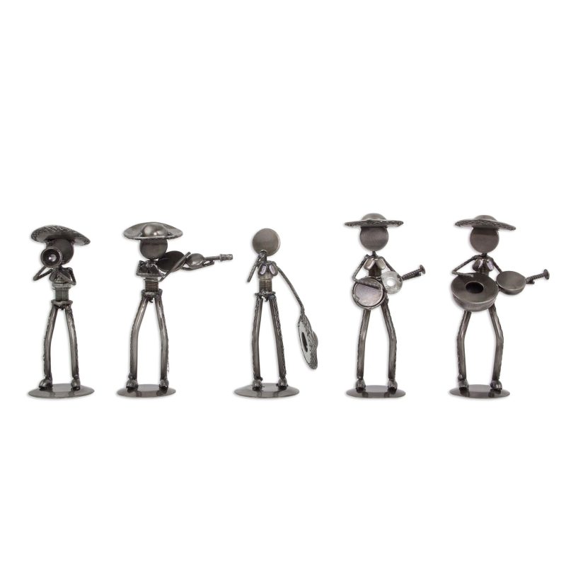 Emblematic of Mexico yet popular throughout the world, five mariachis play a serenade. Armando Ramírez crafts the images from an assortment of recycled metal and automobile parts. Sheet metal scraps, metal screen, spark plugs, washers, screws and wire all find a new life in this unique sculpture set.