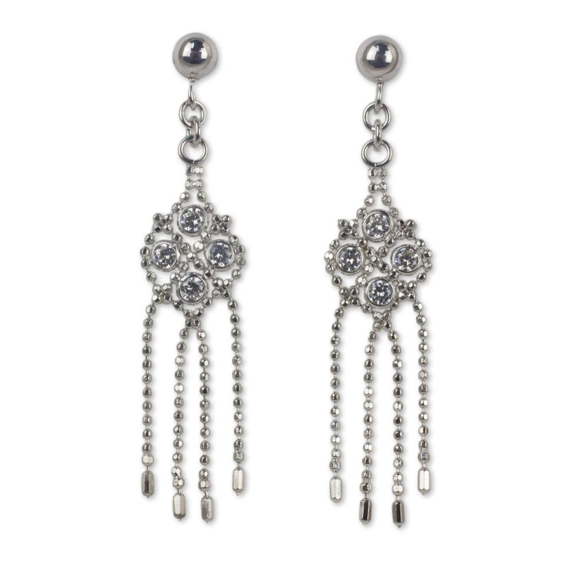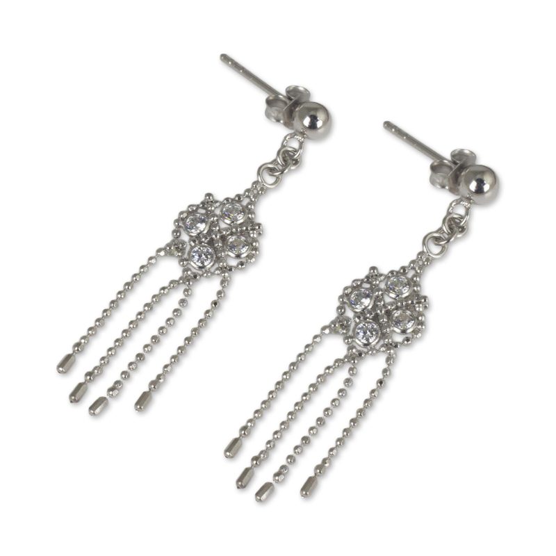 Backed by our 100% Happiness GuaranteePolished sterling silver beads cascade around sparkling stones in these waterfall earrings from Thai artisan Angels. She sets the silver earrings with dazzling cubic zirconia in her glamorous earring design.