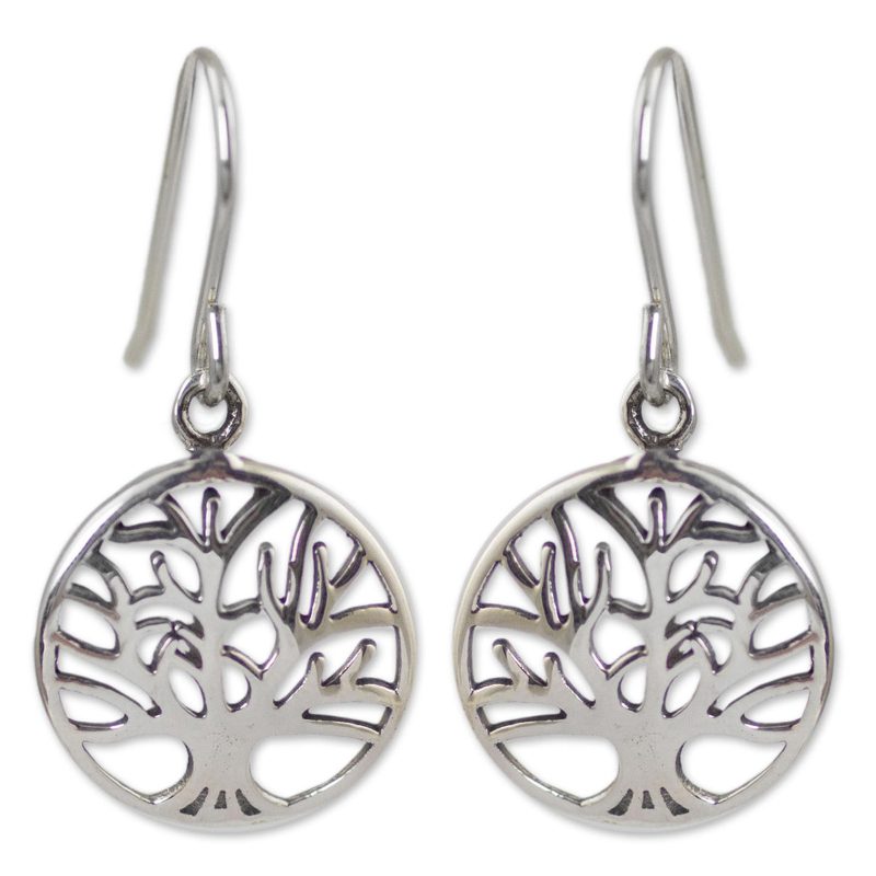 A venerable tree pays tribute to the living forest, its trunk and branches depicted in sterling silver. From Aoy in Thailand, these beautiful earrings are crafted by hand.