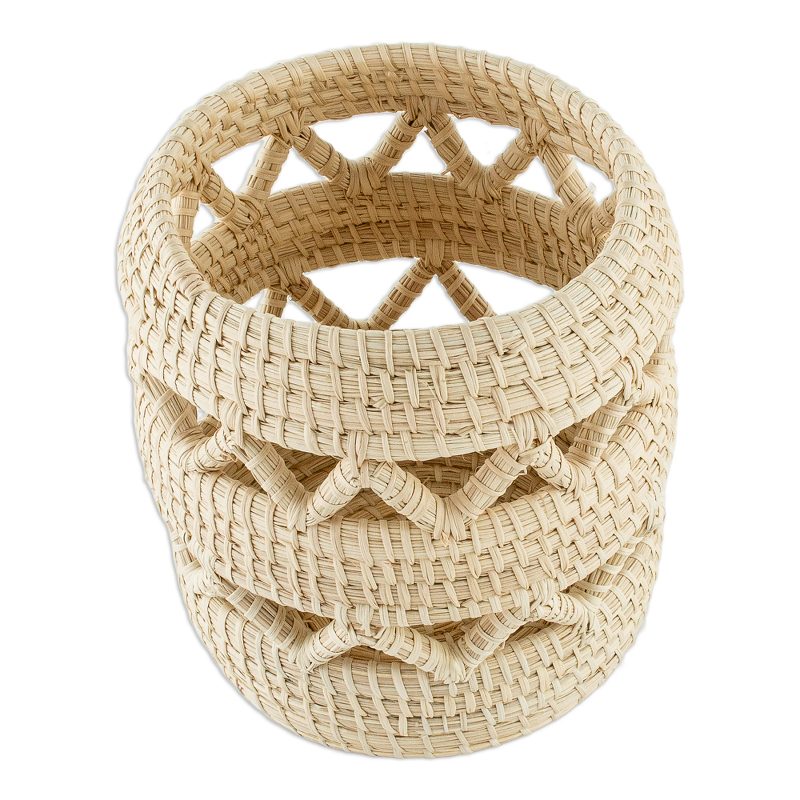 This delightful small basket is crafted using methods that have been employed since pre-Hispanic times. Maria Isabel Montoya in Nicaragua creates the basket from natural yagua palm fibers.