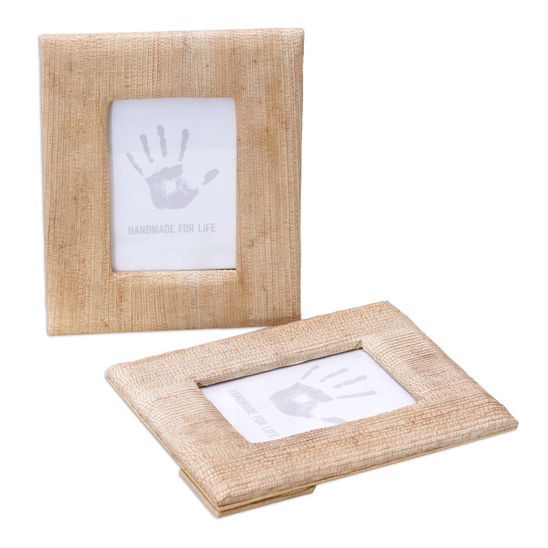 Handcrafted of banana tree bark and agel grass fibers with a rustic beige finish, this pair of photo frames from Indonesia is designed by Komang Sulaksana, ready to hold a favorite 3x5 photo. This charming home accessory makes an excellent decorative accent, perfect for displaying cherished memories.