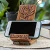 Beautiful carving on clever cell phone stand. Easy to assemble and disassemble for travel. Fits in purse. Purchased as gift for wife. She loves it. Phone sits up for viewing and listening on speaker.