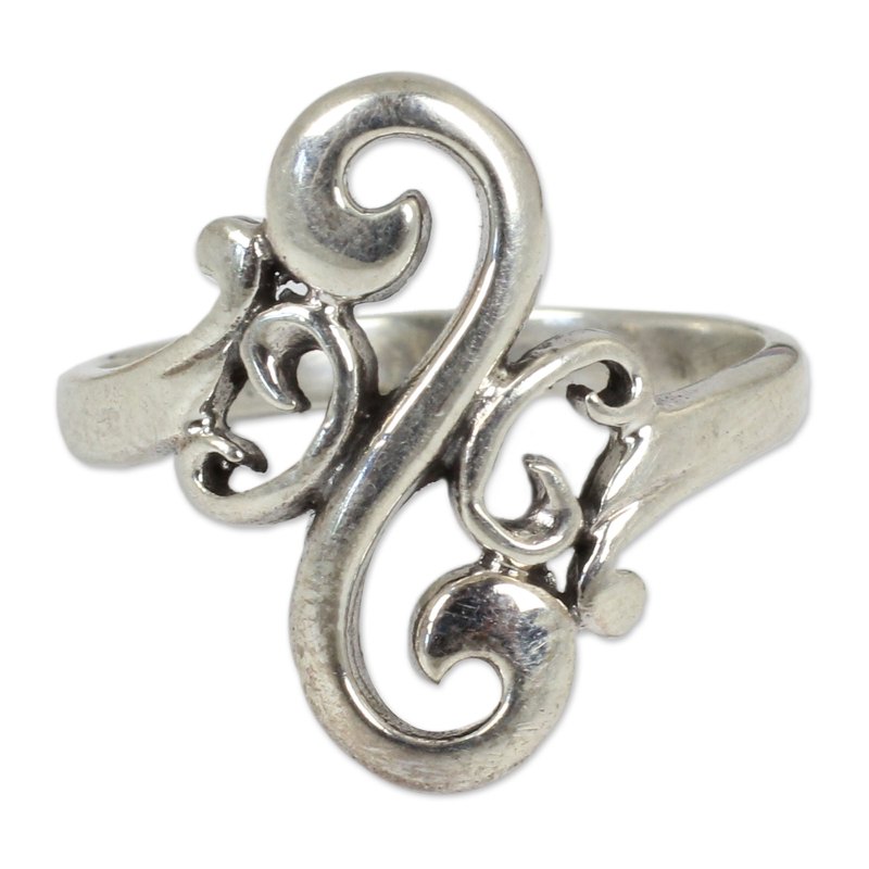 Sterling arabesques form a pattern of beautiful lace. Centering a ring from Thailand's Wadarat Supasirisuk, they feature a delightful texture.