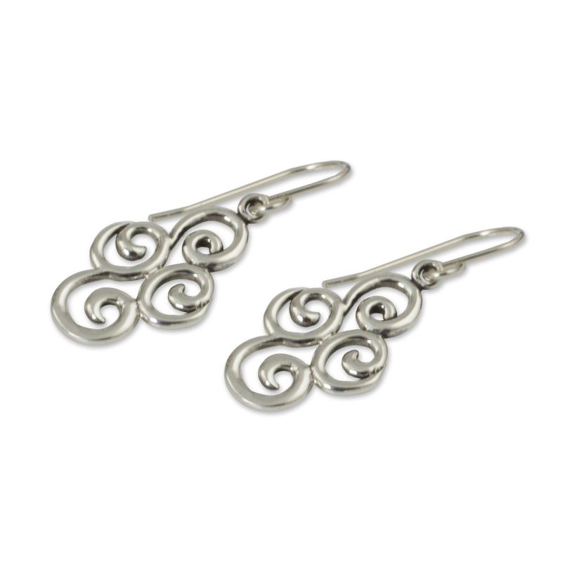 Gleaming ribbons whirl gracefully in a design from Aoy in Thailand. Meticulously crafted of sterling silver, these earrings evoke billowing summer clouds.
