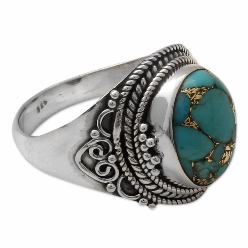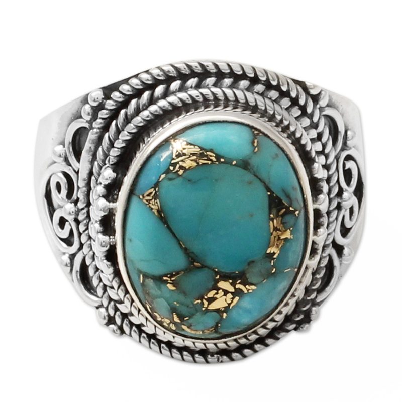 You can find our sterling silver cocktail ring 'Golden Greeting' by Aparna in jewelry categories such as Turquoise Rings, Reconstituted Turquoise Rings, Silver Rings, Sterling Silver Rings and Single Stone Rings. Enjoy exploring these sections for other Novica treasures.