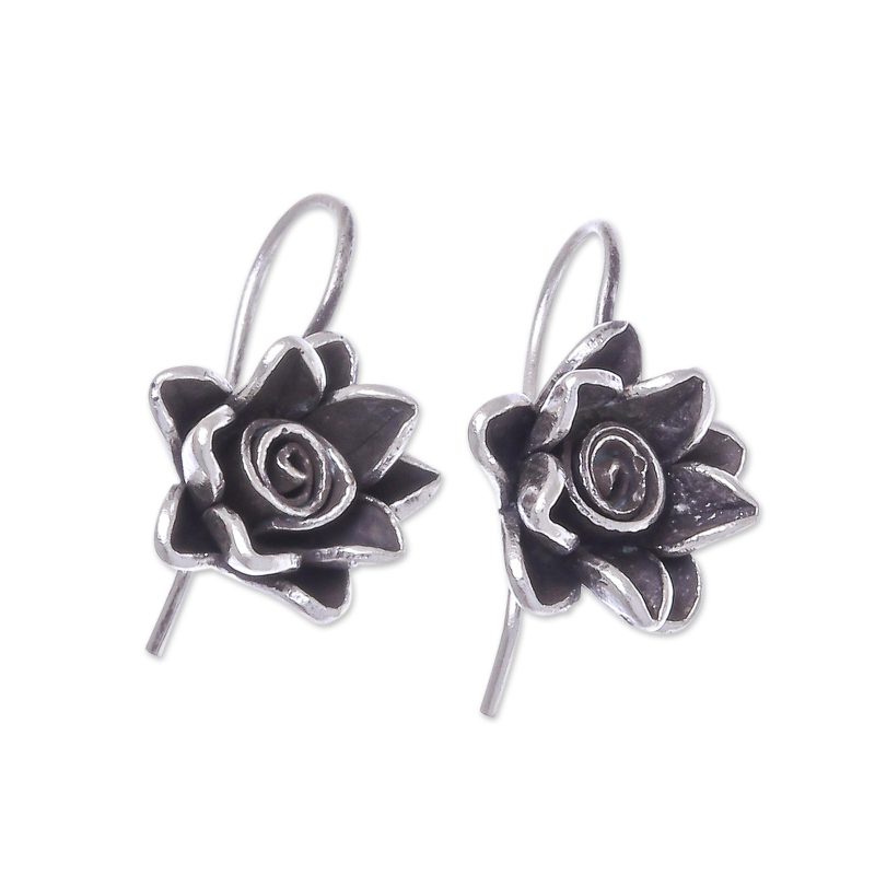 Give yourself a reason to smile with these pretty drop earrings from Thailand's Pakaon Sojintarit. Hand crafted from 925 sterling silver, the earrings are shaped like blossoming flowers in an oxidized finish.