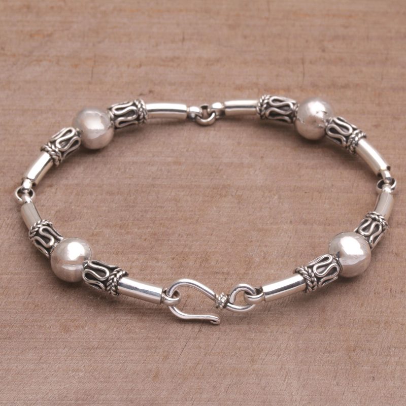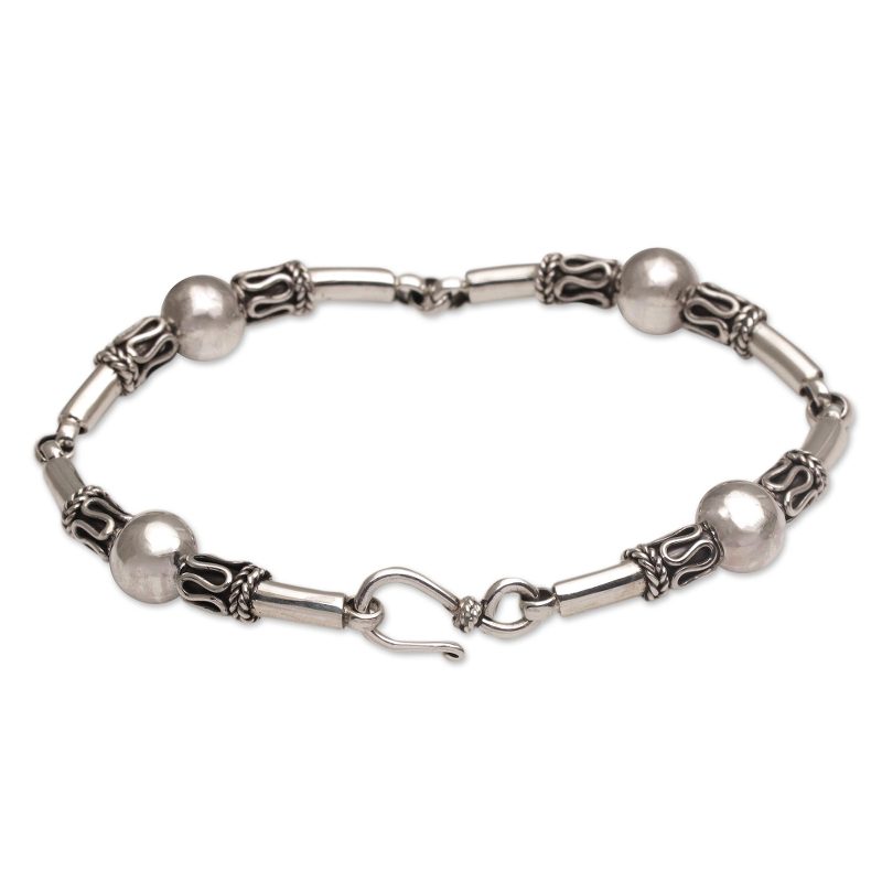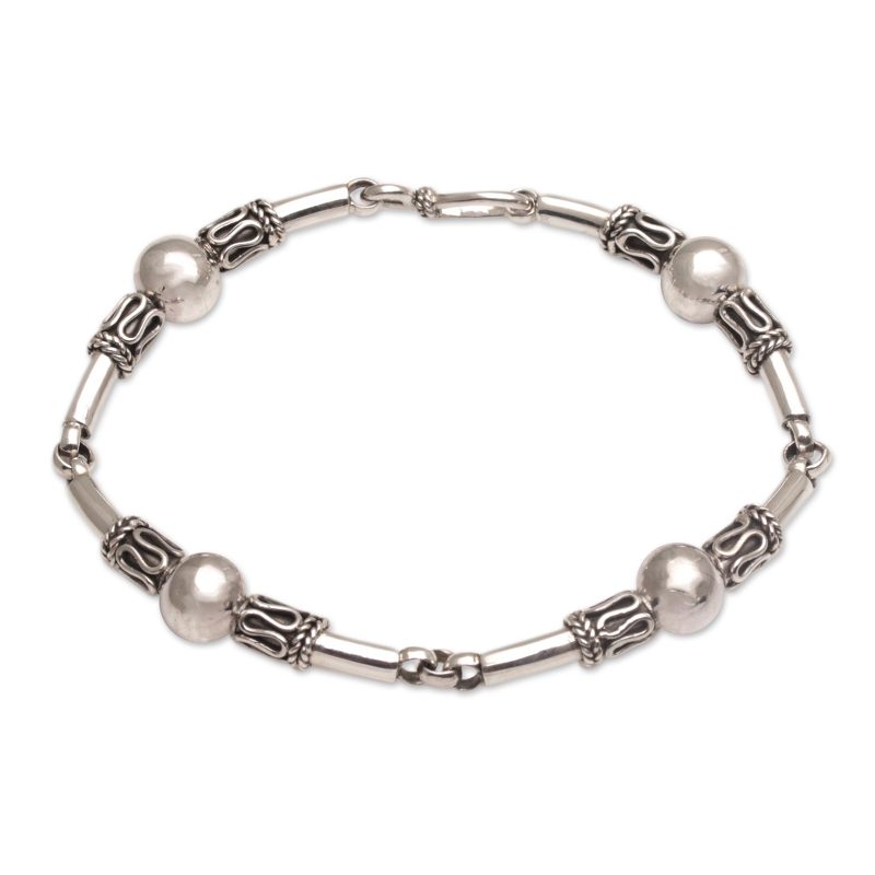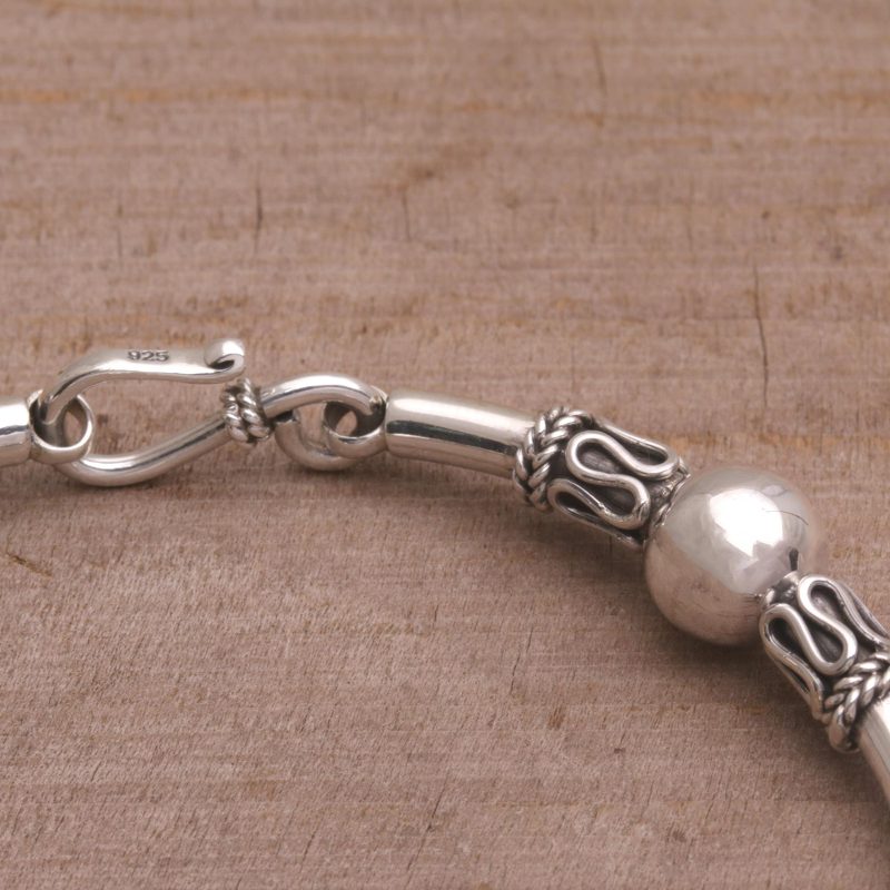 Created by silversmith Wayan Sarjana, the simple elegance of this bracelet speaks for itself. Consisting of four identical sets of a traditional bead and tube design, it is handcrafted from the finest sterling silver (.925). No power tools of any kind are used in the production of Sarjana's jewelry - even down to the blowtorch which is powered by foot action.
