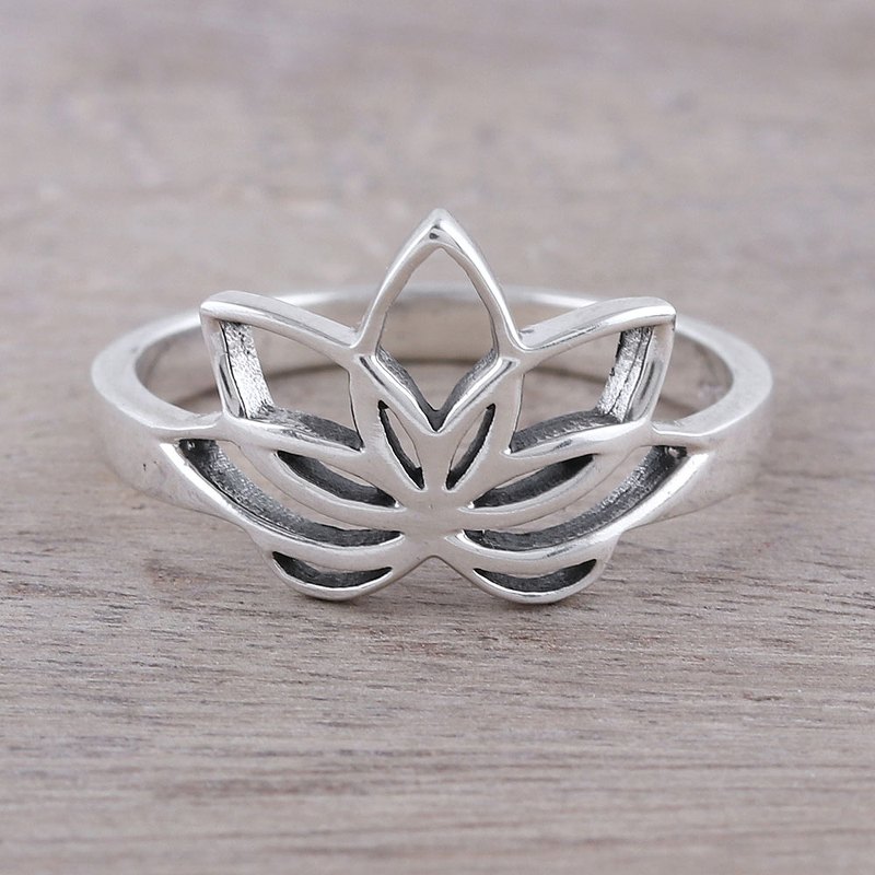 You can find our sterling silver cocktail ring 'Graceful Lotus' by Bhavya Jain in jewelry categories such as Floral Rings, Thought and Meditation Rings, No Stone Rings, Silver Rings and Sterling Silver Rings. Enjoy exploring these sections for other Novica treasures.