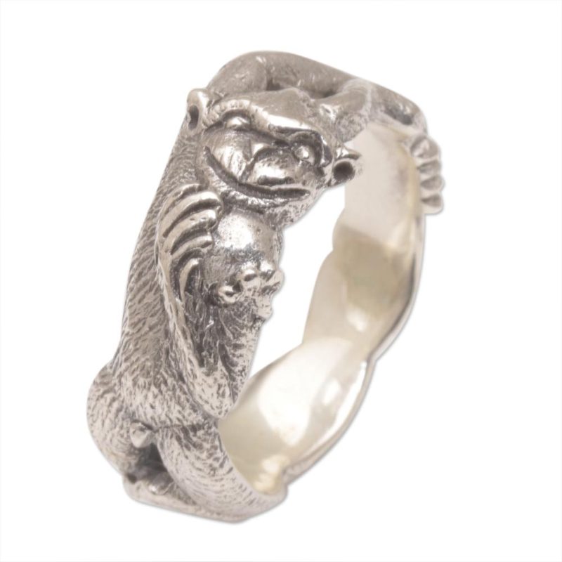 Crafted of sterling silver, a charming ape strikes a pose in this band ring by Indonesia's Nyoman Rena. Add the spirit of the jungle to your wardrobe with this exciting accessory.