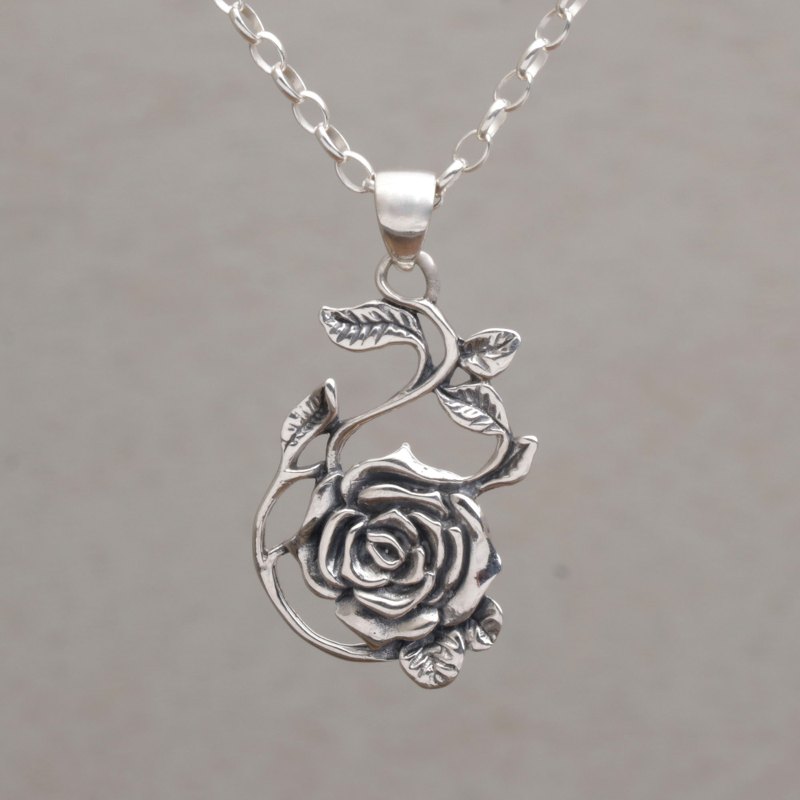 You can find our sterling silver pendant necklace 'Thorny Rose' by Wayan Asmana in jewelry categories such as Floral Necklaces, No Stone Necklaces, Sterling Silver Necklaces and Pendant Necklaces. Enjoy exploring these sections for other Novica treasures.