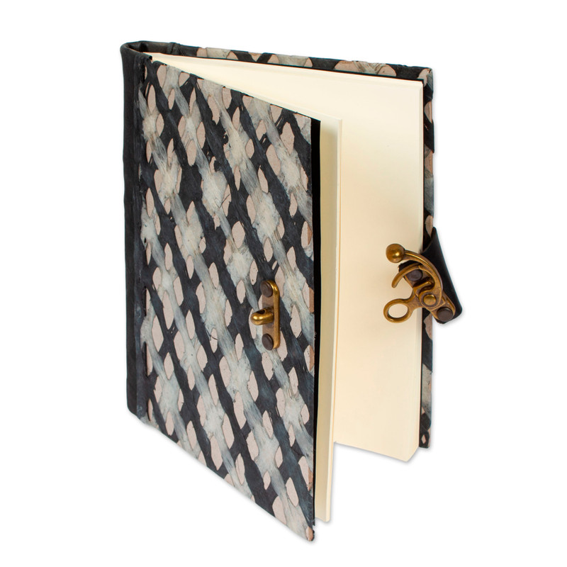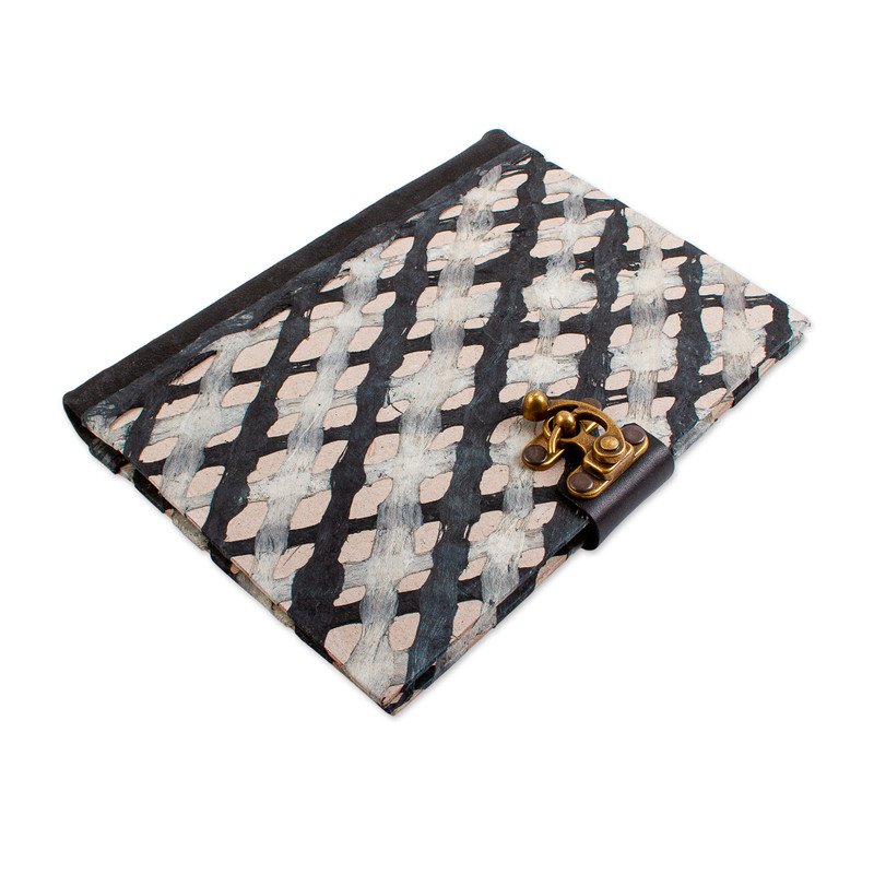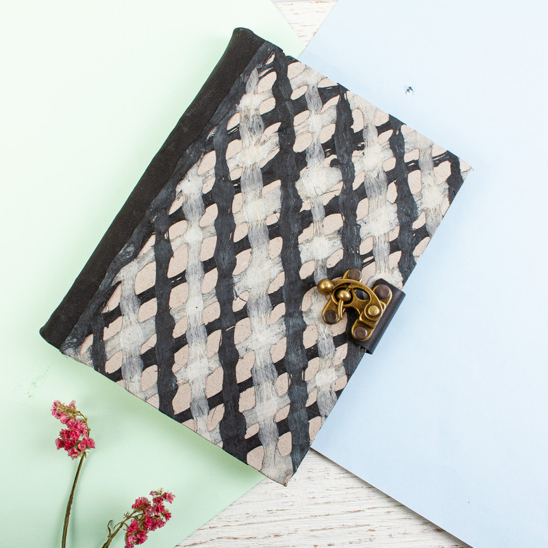 Entirely crafted by hand, this unique journal is from Indira Flores in Mexico. The cover is adorned with a lattice design made from amate paper in black and white. The suede-bound journal features 187 pages of unlined, recycled paper and a vintage-style clasp.