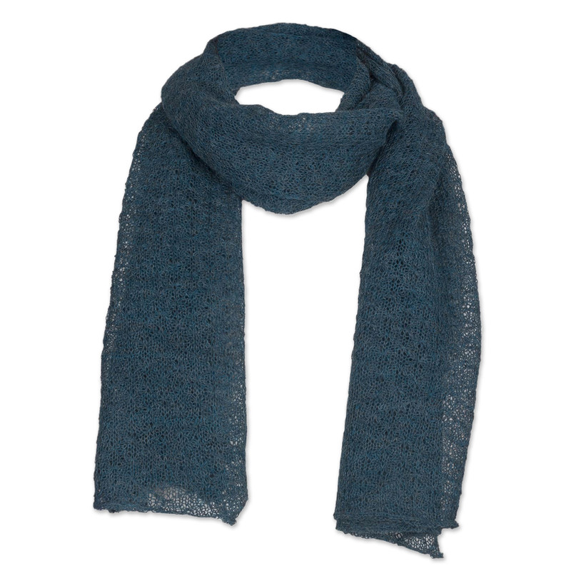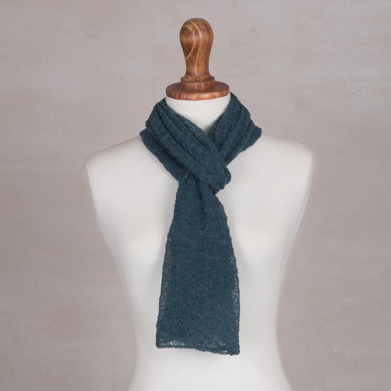 The wavy texture of this wrap scarf makes it a fashionable companion. Designed by Alfredo Falcon, the scarf is crafted of 100% baby alpaca wool and finished by hand. This elegant scarf features a solid color in teal for an attractive accessory. Baby alpaca refers to the fine fleece from the season's first shearing.