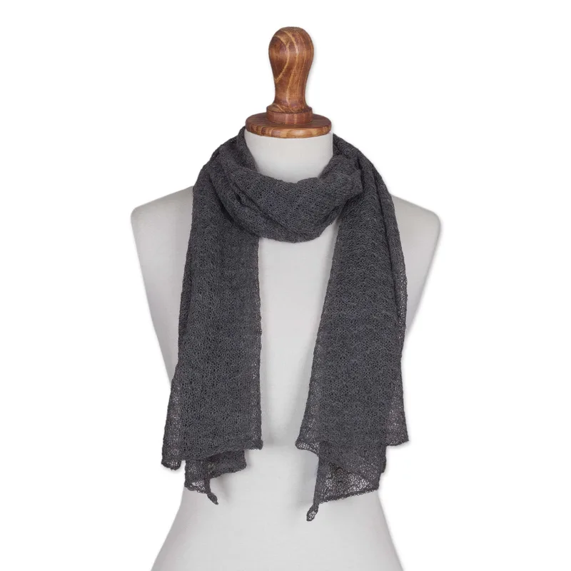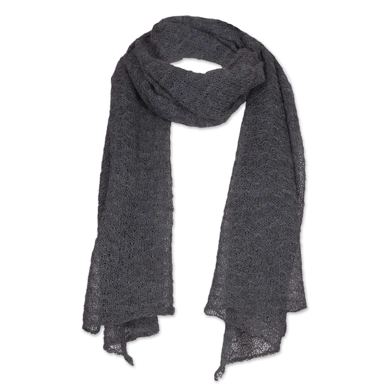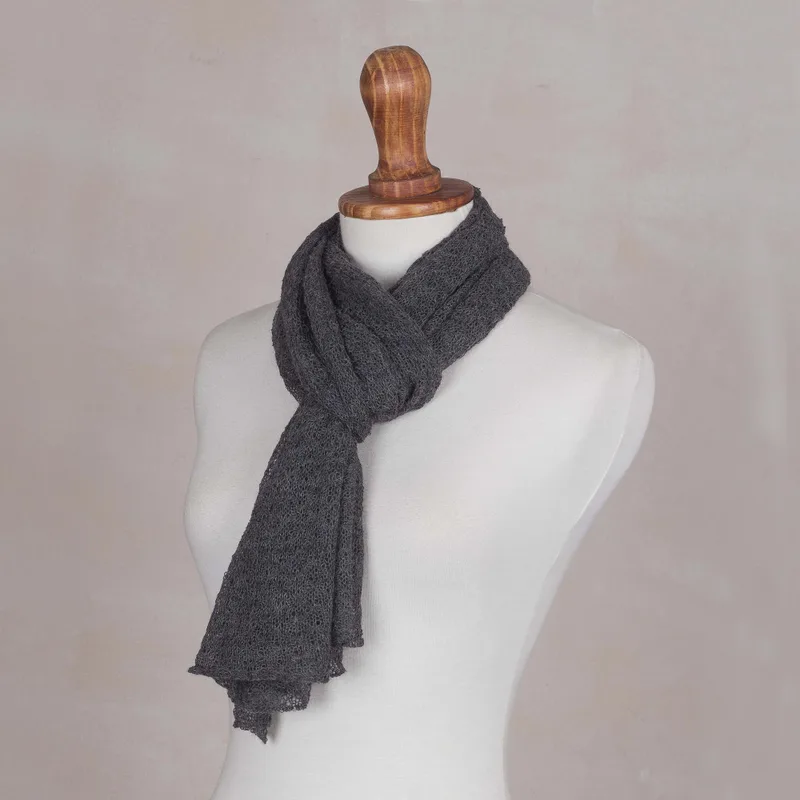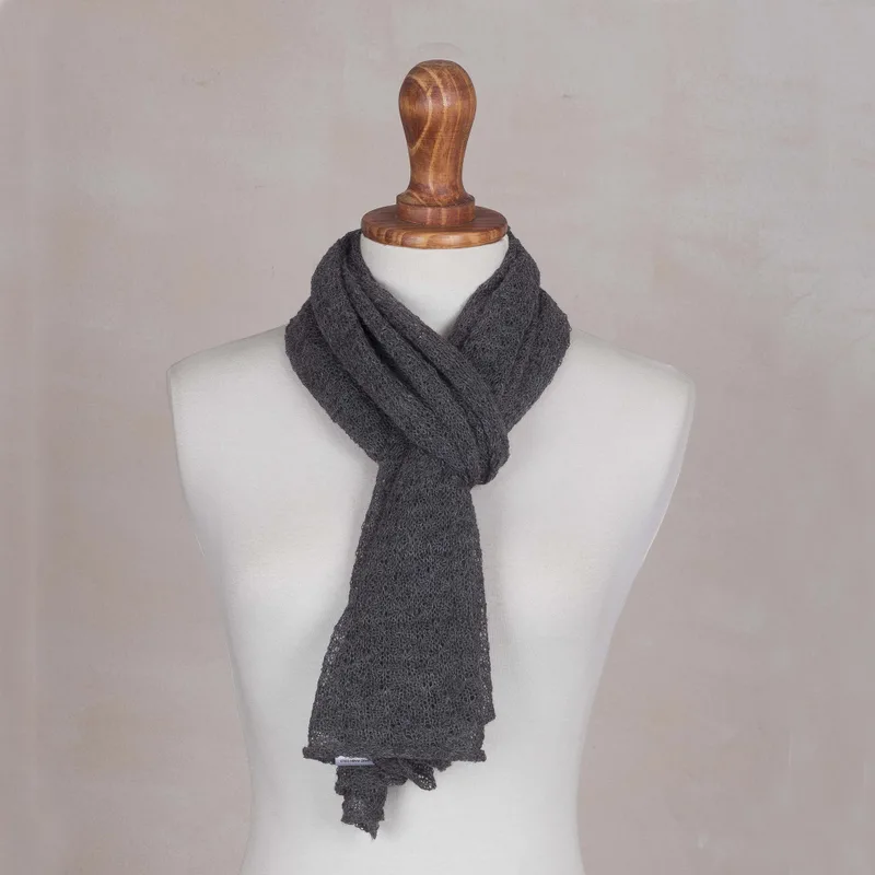 Peruvian artisan Alfredo Falcon uses baby alpaca wool, which refers to the fine fleece from the season's first shearing, to knit this sophisticated scarf.